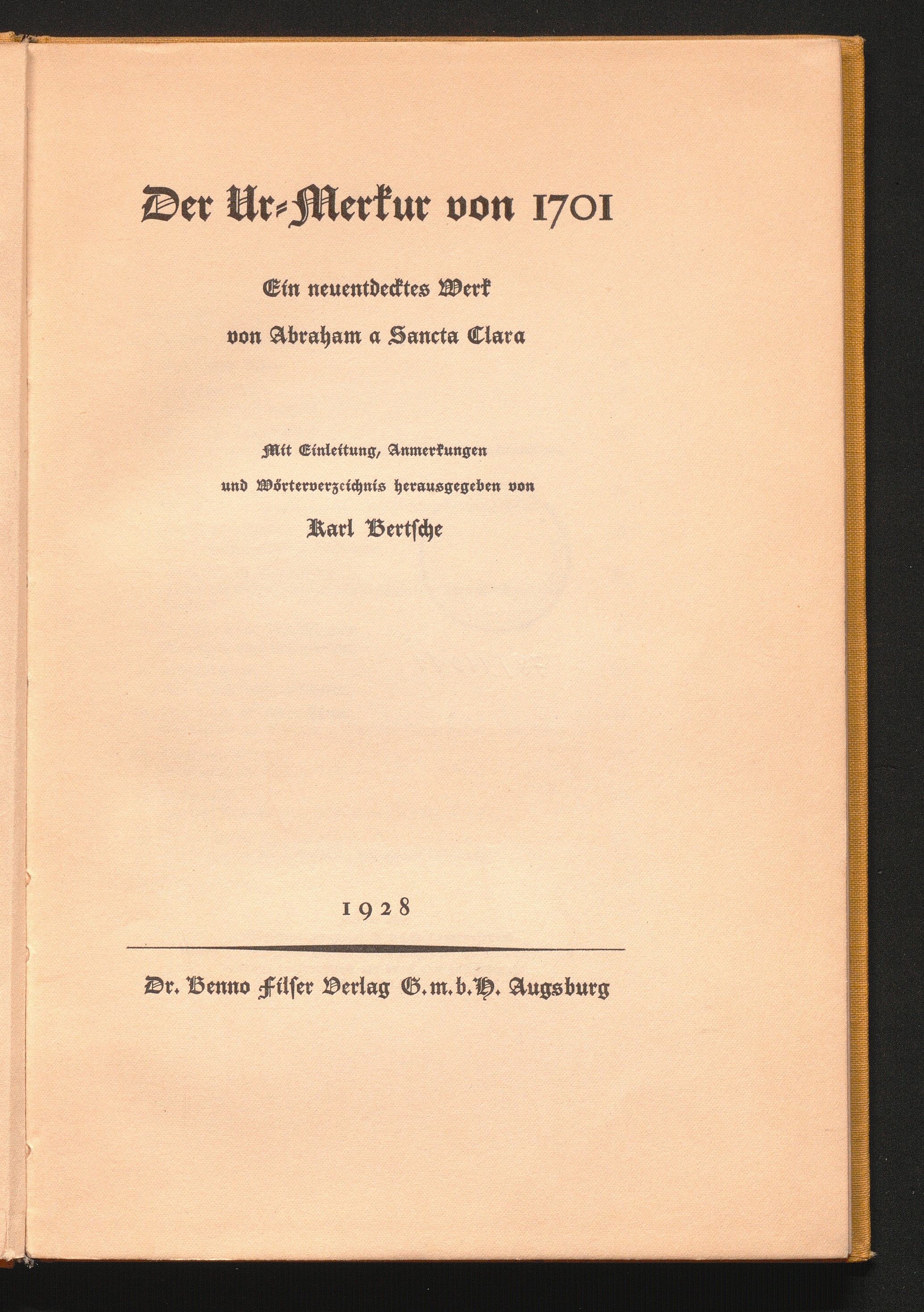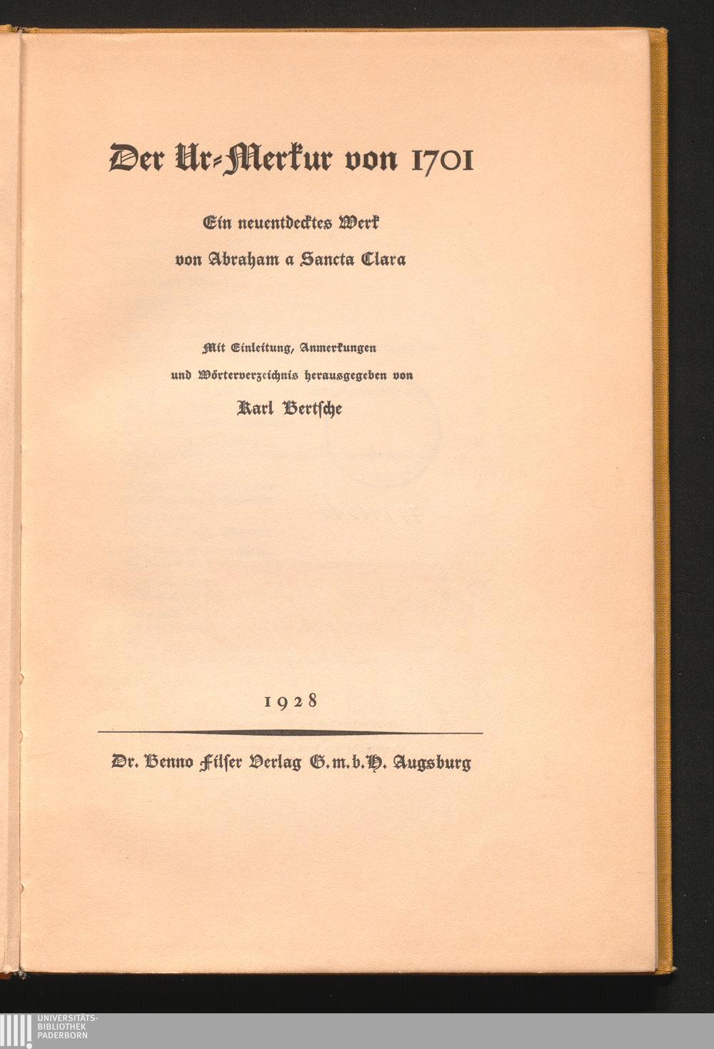 Der Ur-Merkur von 1701 : ein neuentdecktes Werk von Abraham a Sancta Clara / mit Einl., Anm. und Wörterverz. hrsg. von Karl Bertsche