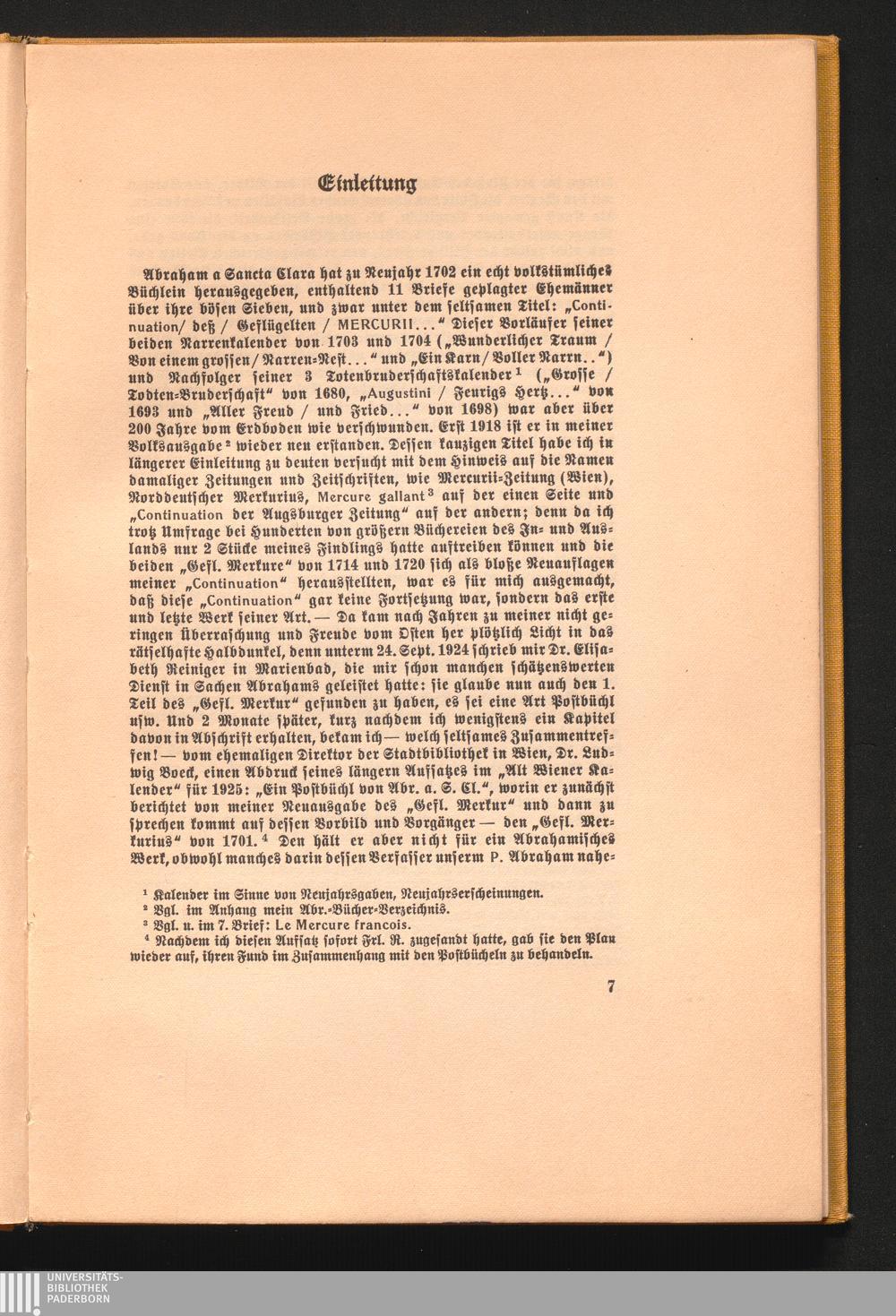 Der Ur-Merkur von 1701 : ein neuentdecktes Werk von Abraham a Sancta Clara / mit Einl., Anm. und Wörterverz. hrsg. von Karl Bertsche