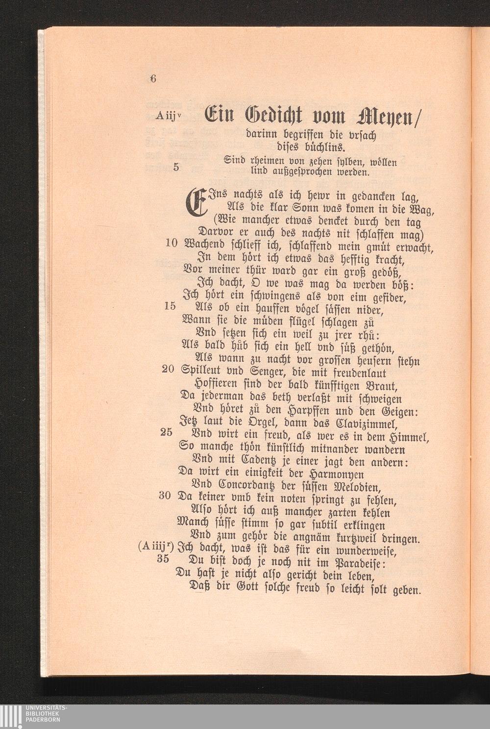 Ein Gedicht vom Meyen/ darinn begriffen die vrsach dises büchlins.