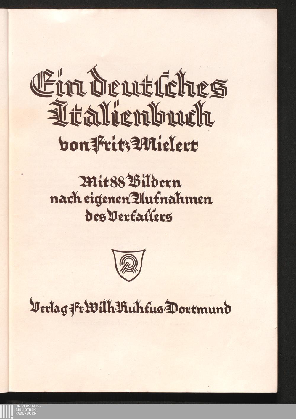 Ein deutsches Italienbuch : mit 88 Bildern nach eigenen Aufnahmen d. Verf. / Fritz Mielert