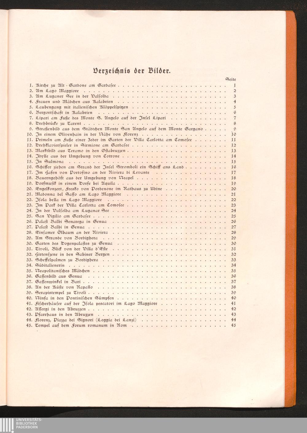 Verzeichnis der Bilder.