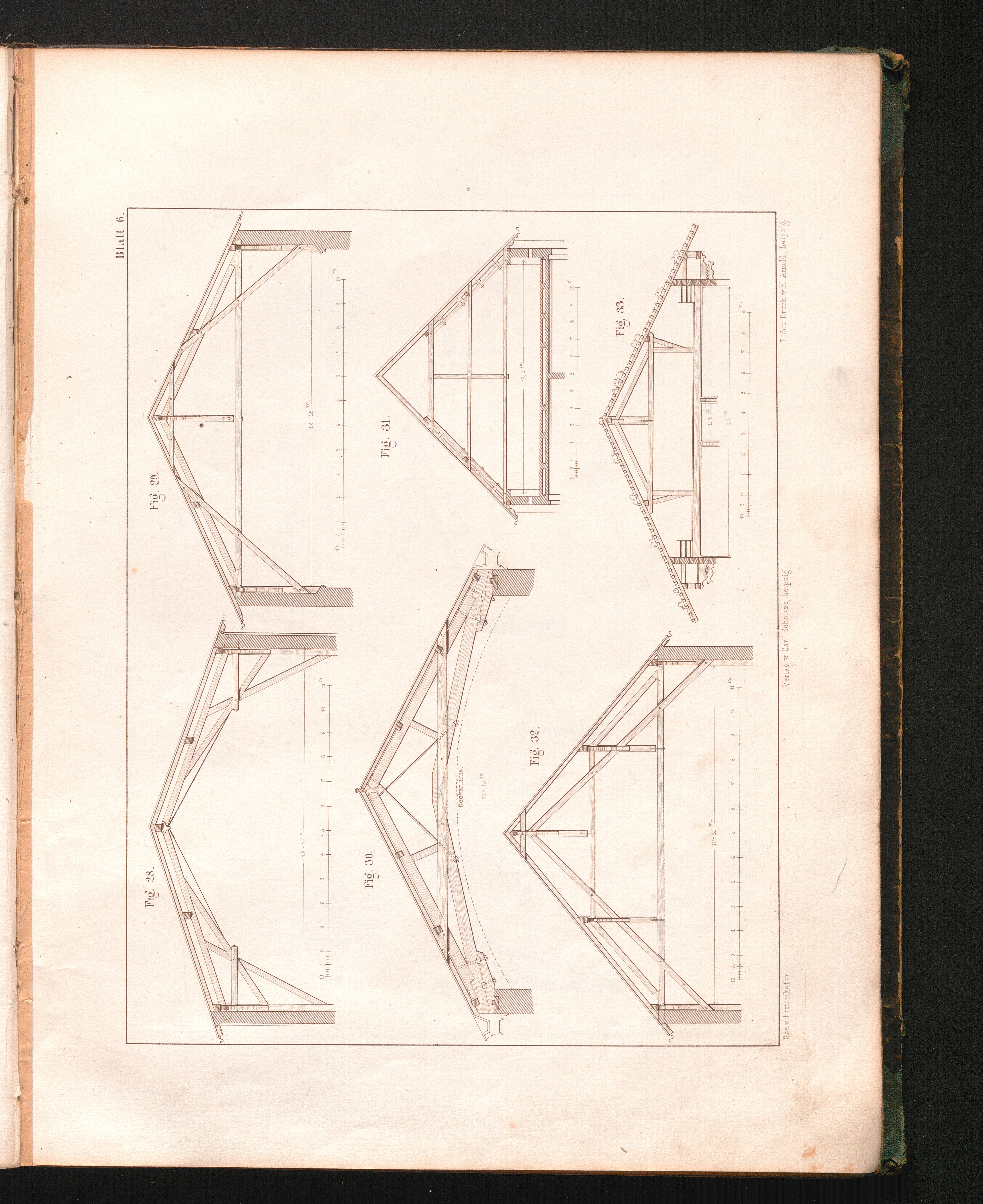 Neuere Dach-Binder : nach Spannweiten und Unterstützungen im Metermaass / sytematisch zsgest. zum Gebrauche für Architekten, Baugewerkmeister und Schüler von Architekt Hittenkofer