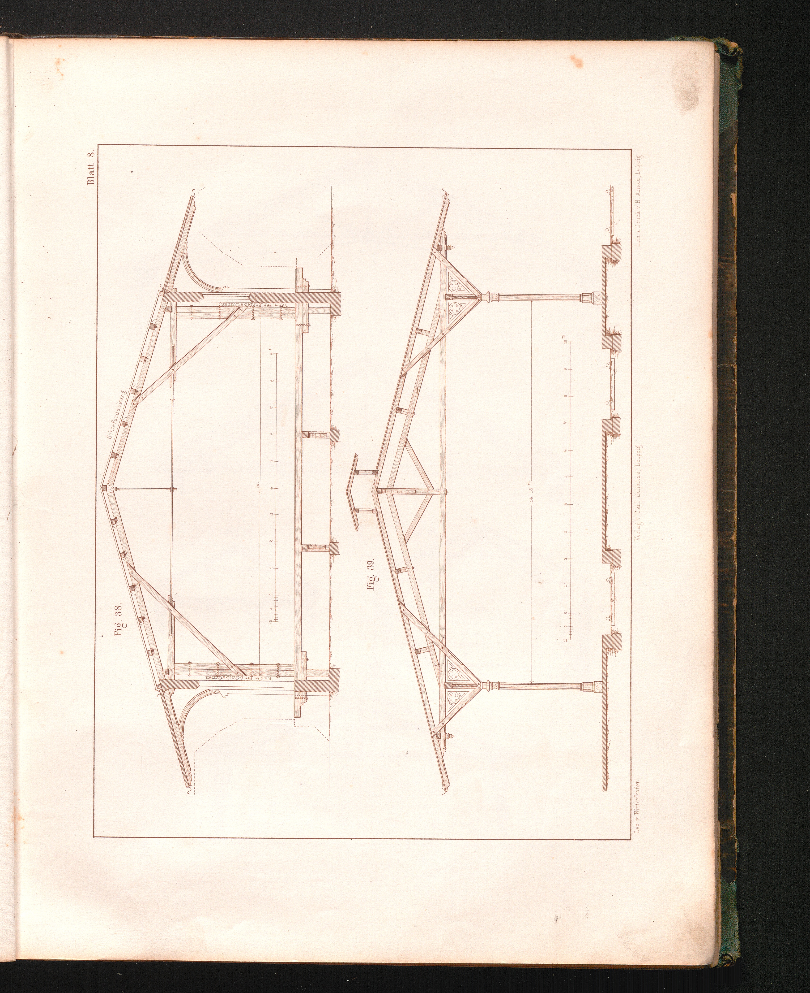 Neuere Dach-Binder : nach Spannweiten und Unterstützungen im Metermaass / sytematisch zsgest. zum Gebrauche für Architekten, Baugewerkmeister und Schüler von Architekt Hittenkofer