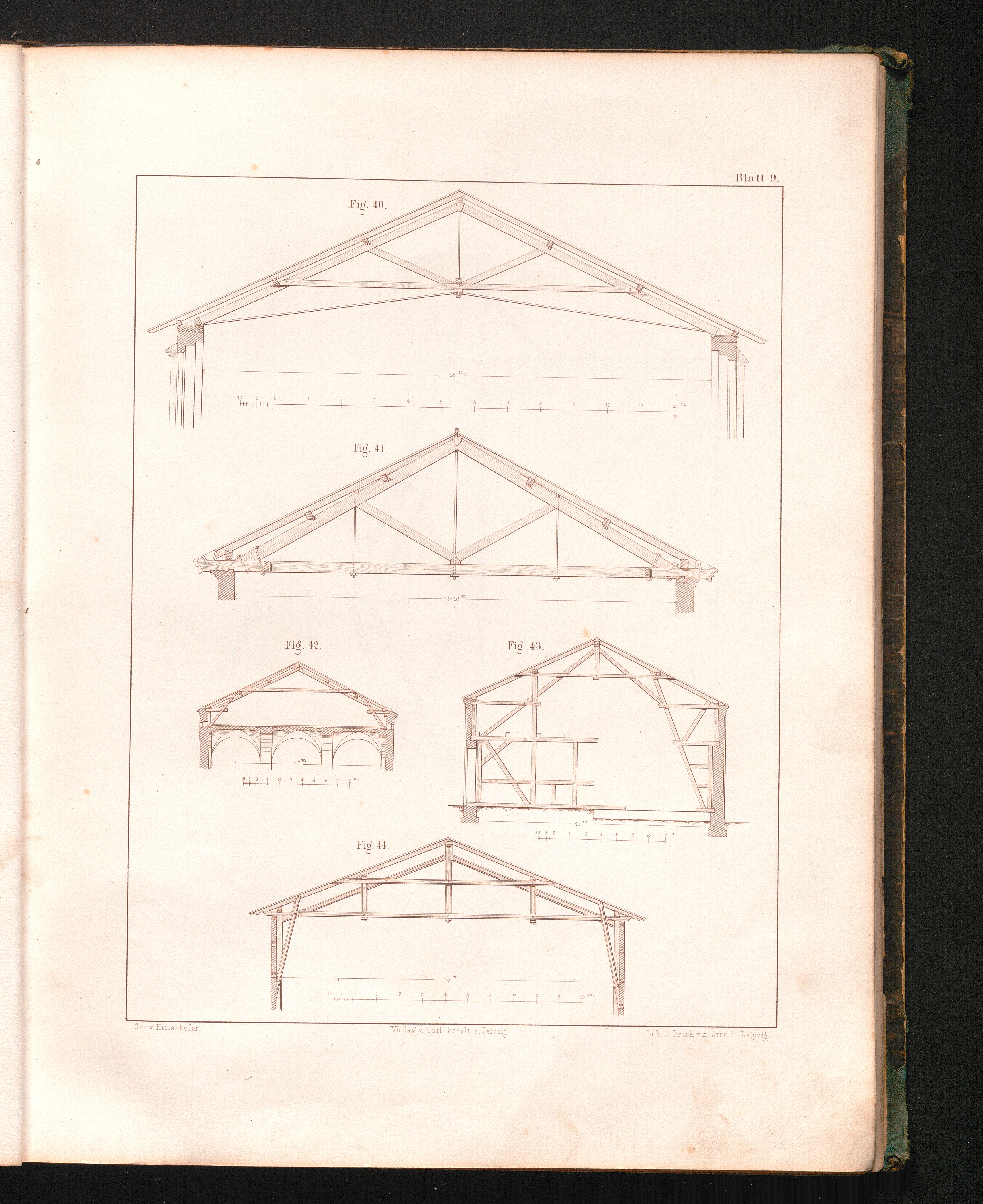 Neuere Dach-Binder : nach Spannweiten und Unterstützungen im Metermaass / sytematisch zsgest. zum Gebrauche für Architekten, Baugewerkmeister und Schüler von Architekt Hittenkofer