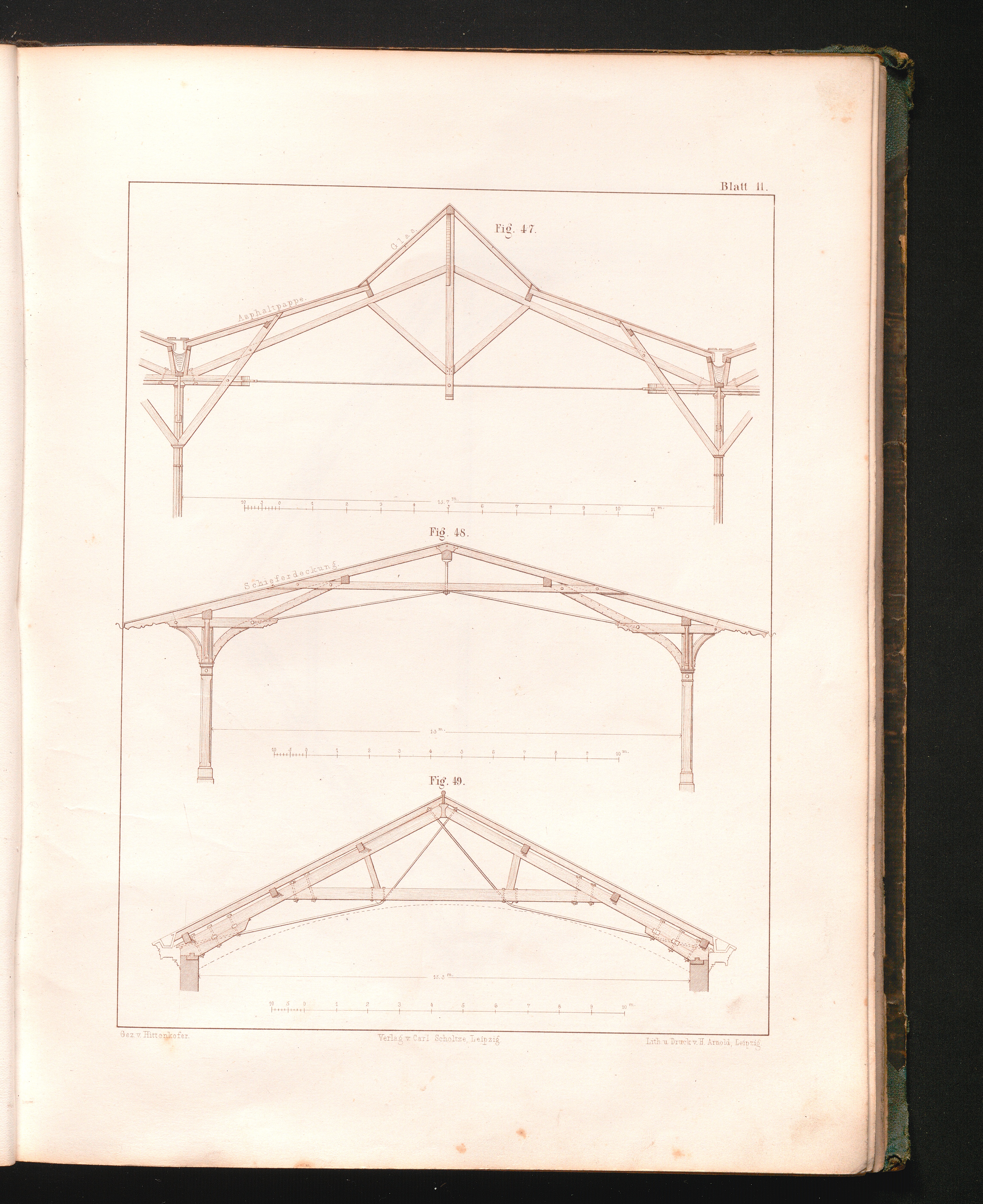 Neuere Dach-Binder : nach Spannweiten und Unterstützungen im Metermaass / sytematisch zsgest. zum Gebrauche für Architekten, Baugewerkmeister und Schüler von Architekt Hittenkofer