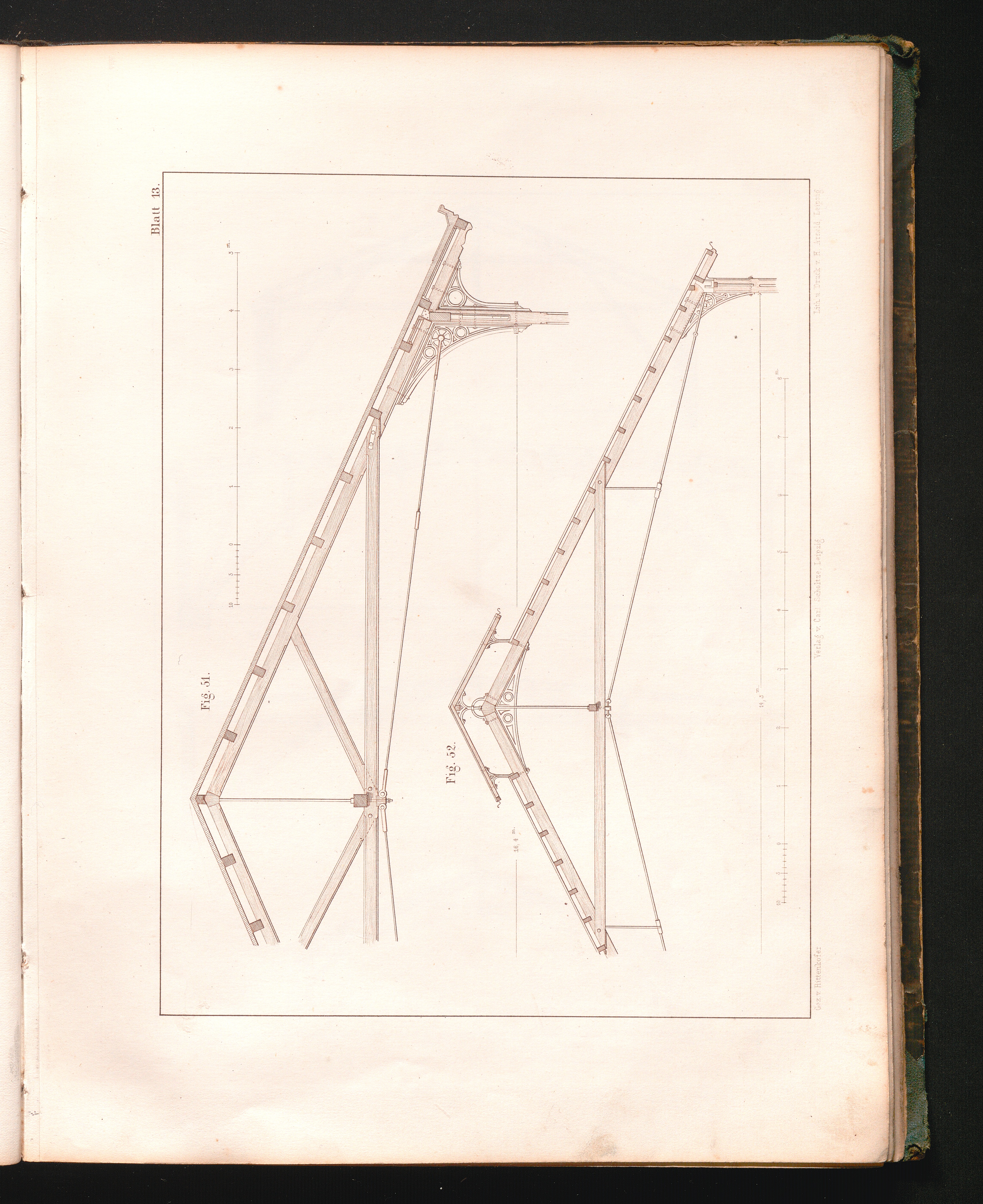 Neuere Dach-Binder : nach Spannweiten und Unterstützungen im Metermaass / sytematisch zsgest. zum Gebrauche für Architekten, Baugewerkmeister und Schüler von Architekt Hittenkofer