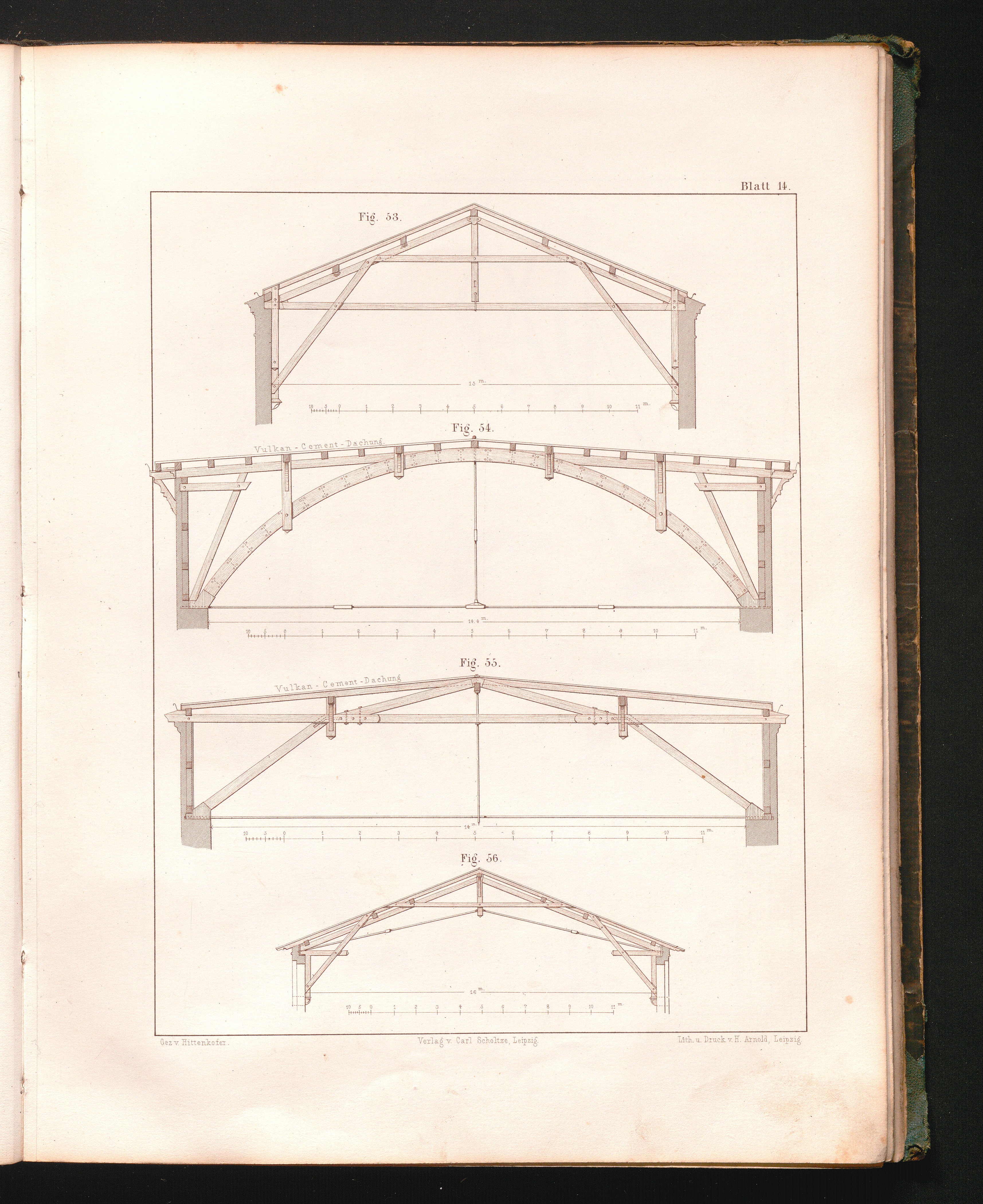 Neuere Dach-Binder : nach Spannweiten und Unterstützungen im Metermaass / sytematisch zsgest. zum Gebrauche für Architekten, Baugewerkmeister und Schüler von Architekt Hittenkofer