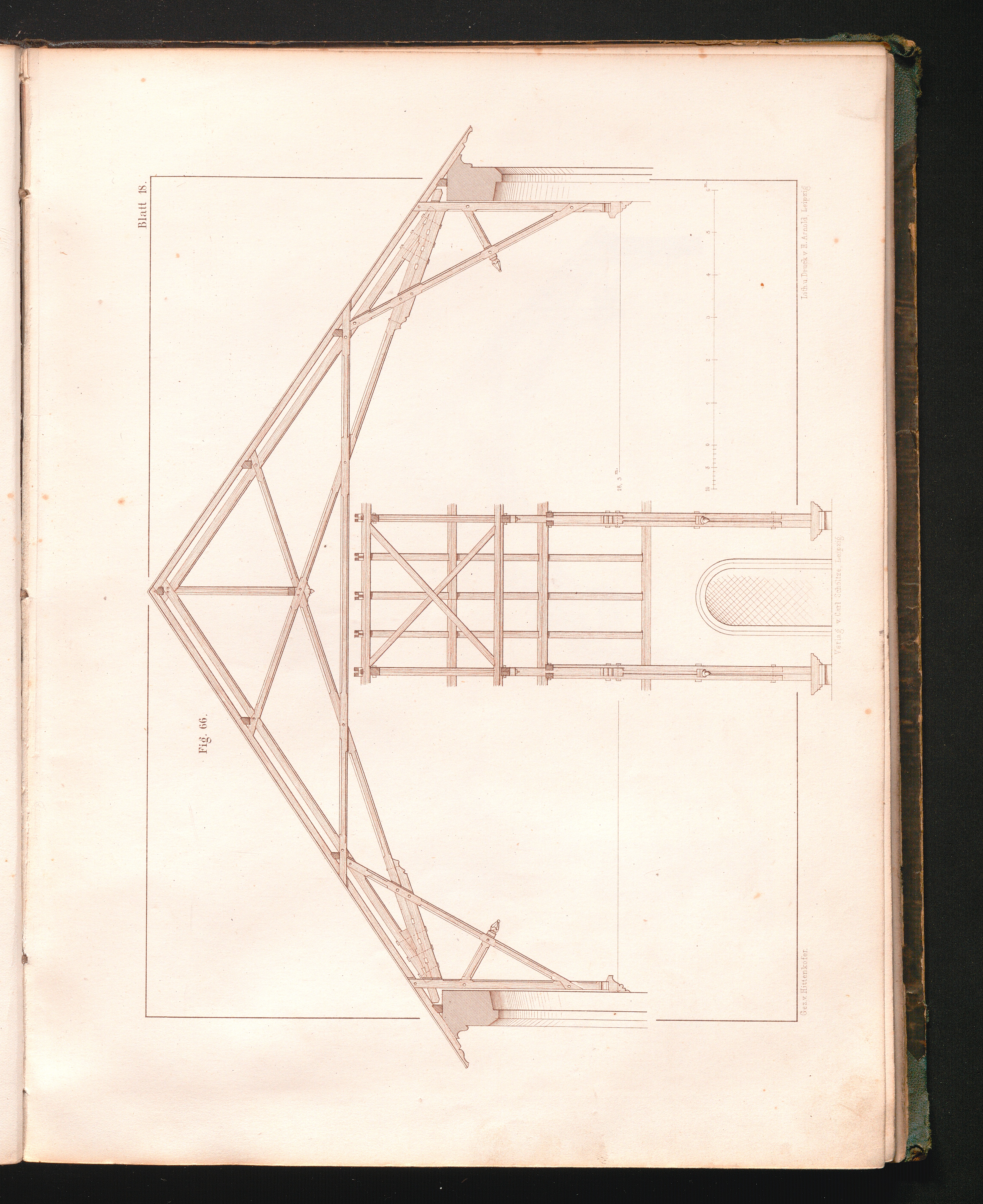 Neuere Dach-Binder : nach Spannweiten und Unterstützungen im Metermaass / sytematisch zsgest. zum Gebrauche für Architekten, Baugewerkmeister und Schüler von Architekt Hittenkofer
