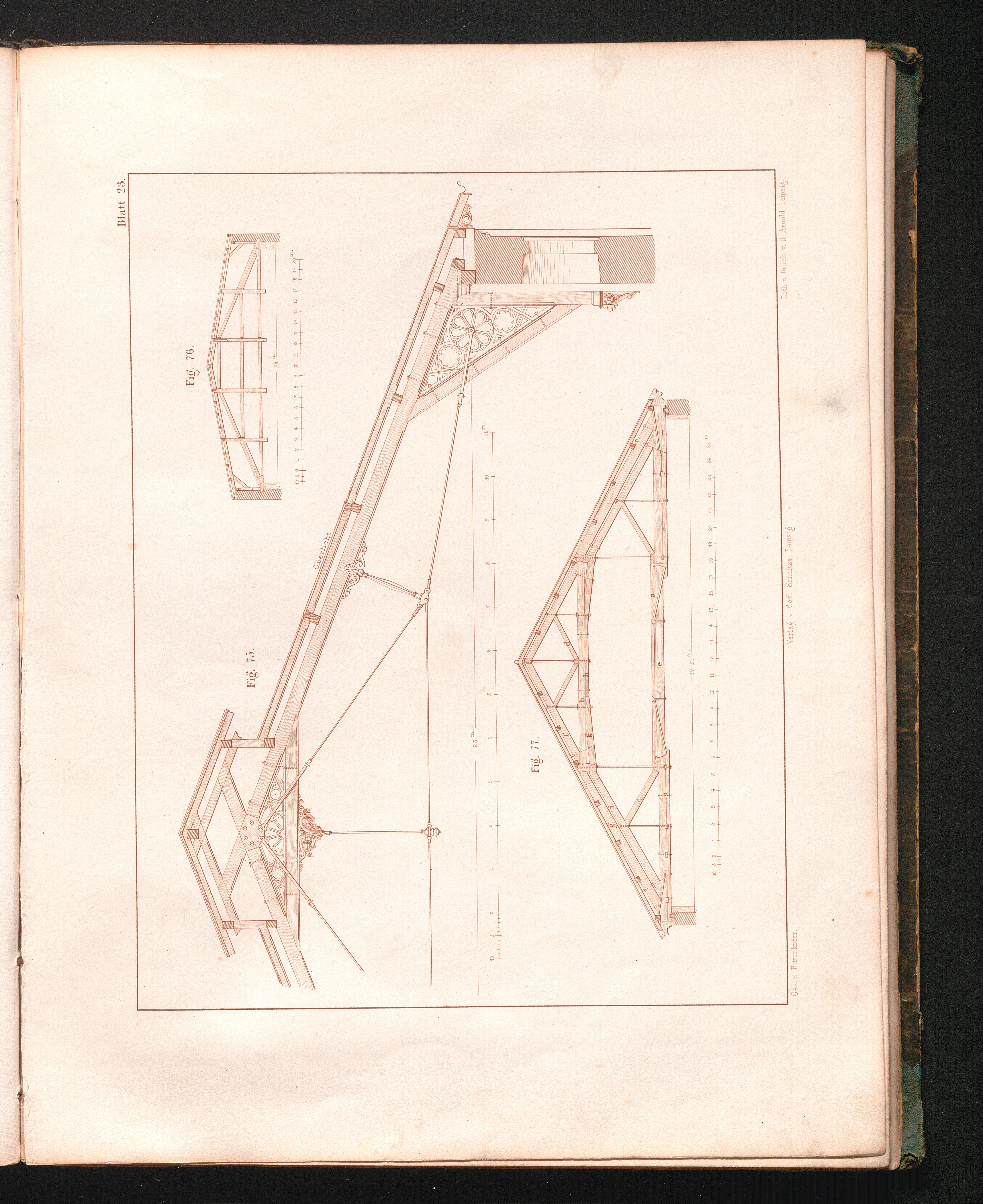 Neuere Dach-Binder : nach Spannweiten und Unterstützungen im Metermaass / sytematisch zsgest. zum Gebrauche für Architekten, Baugewerkmeister und Schüler von Architekt Hittenkofer