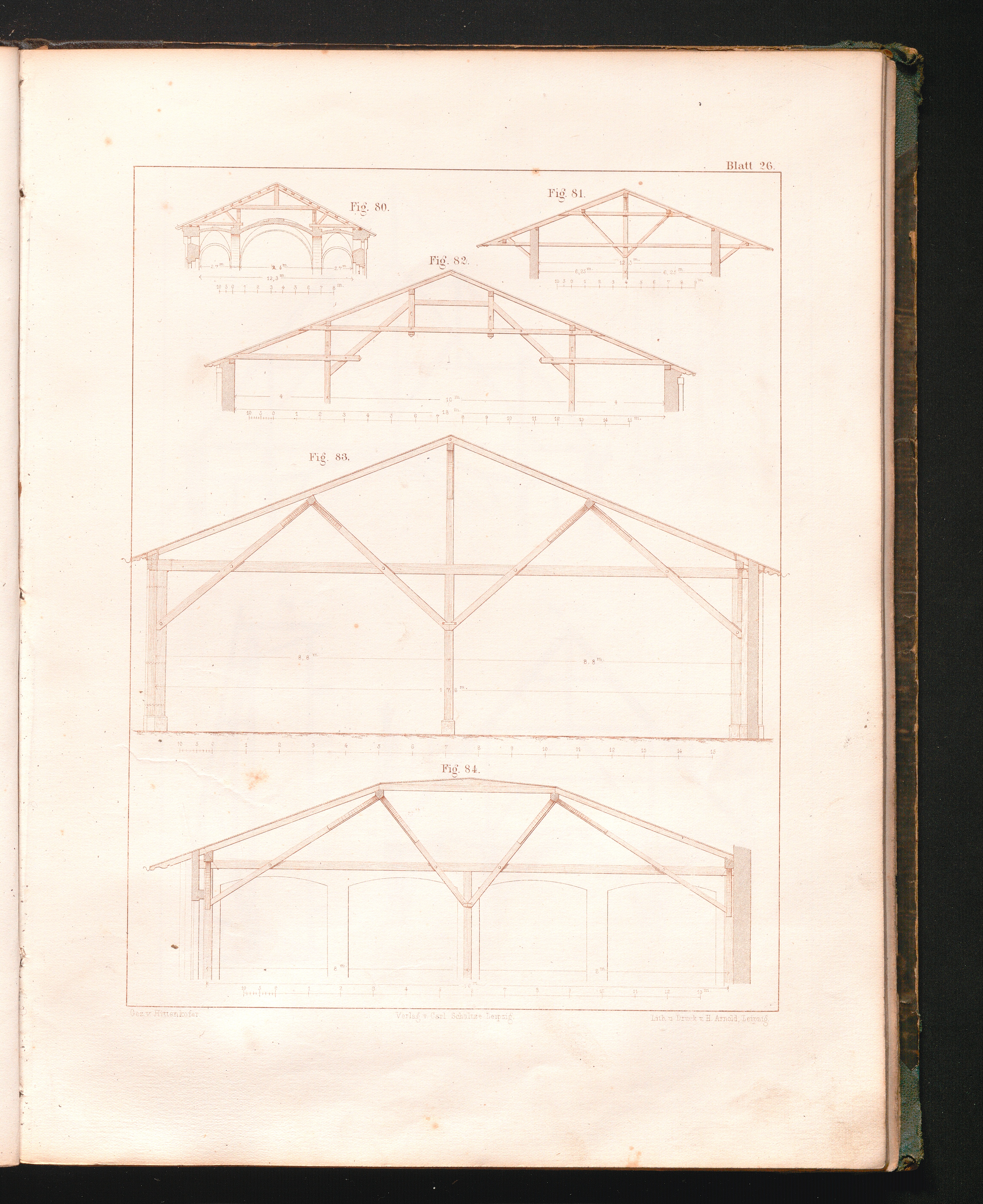Neuere Dach-Binder : nach Spannweiten und Unterstützungen im Metermaass / sytematisch zsgest. zum Gebrauche für Architekten, Baugewerkmeister und Schüler von Architekt Hittenkofer