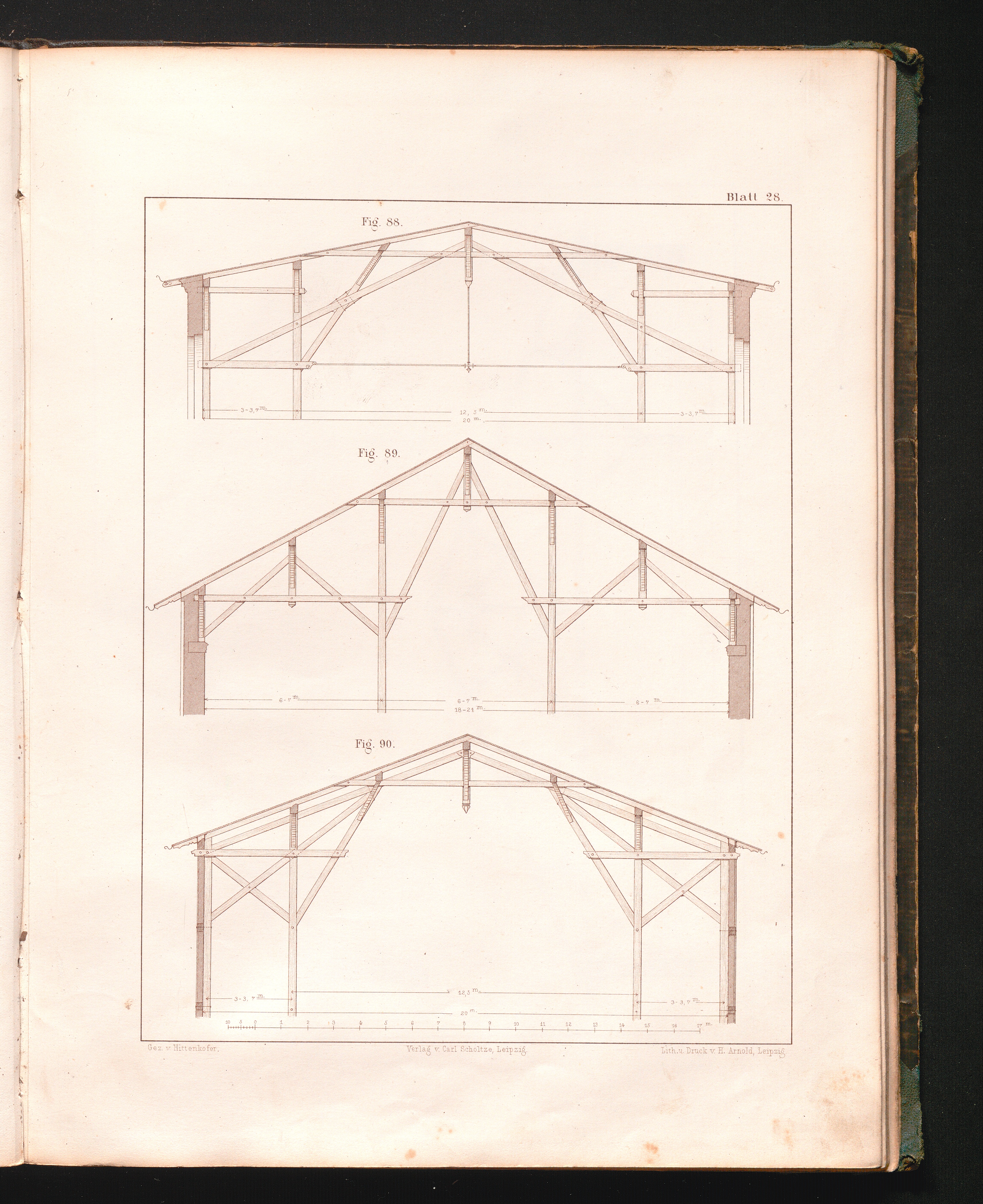Neuere Dach-Binder : nach Spannweiten und Unterstützungen im Metermaass / sytematisch zsgest. zum Gebrauche für Architekten, Baugewerkmeister und Schüler von Architekt Hittenkofer