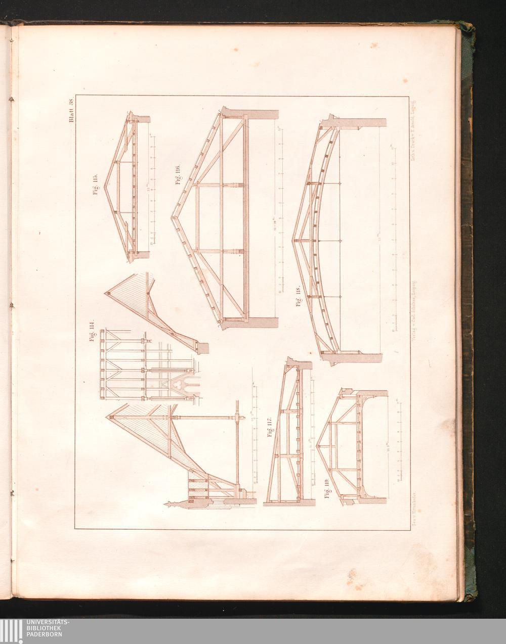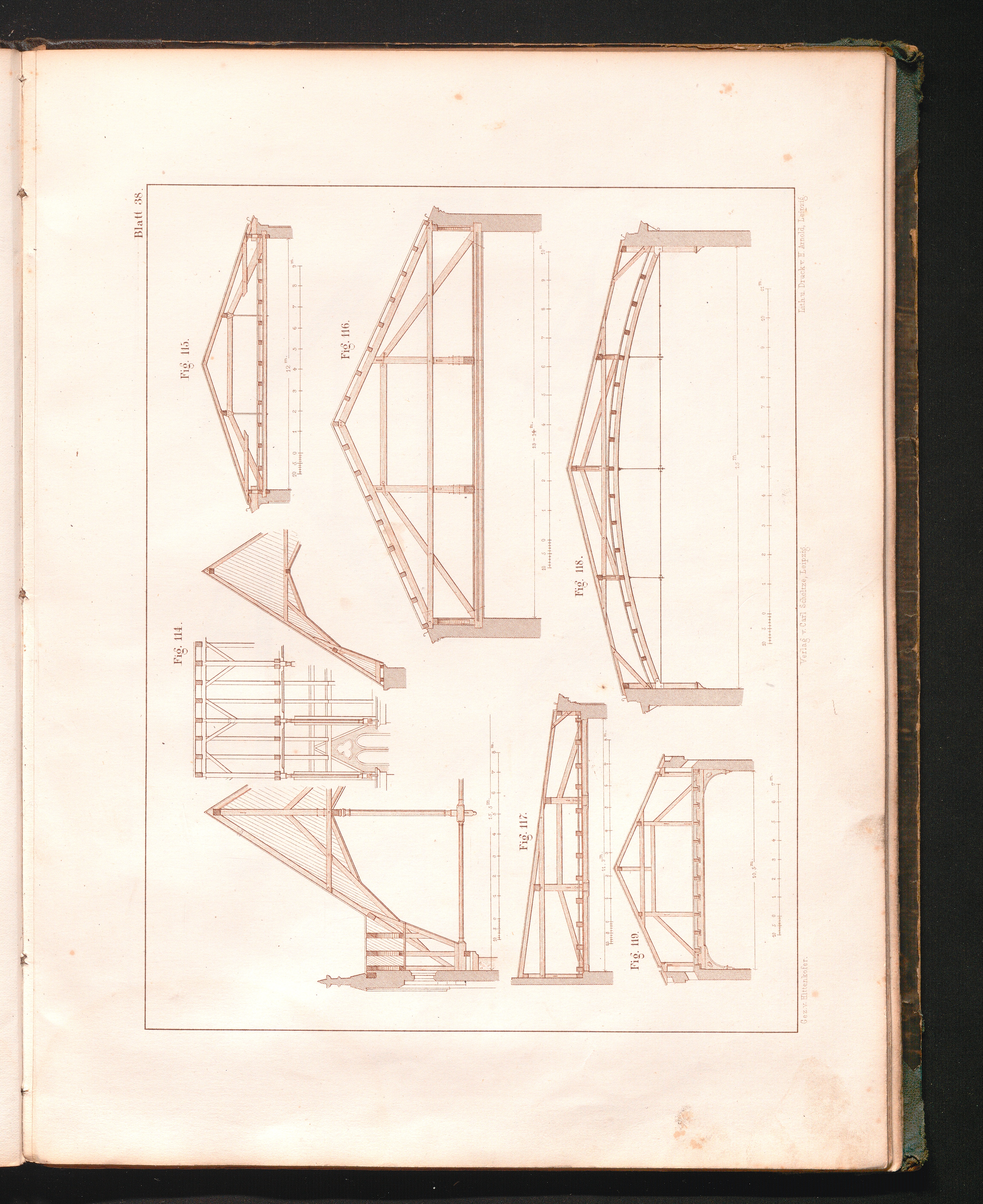 Neuere Dach-Binder : nach Spannweiten und Unterstützungen im Metermaass / sytematisch zsgest. zum Gebrauche für Architekten, Baugewerkmeister und Schüler von Architekt Hittenkofer