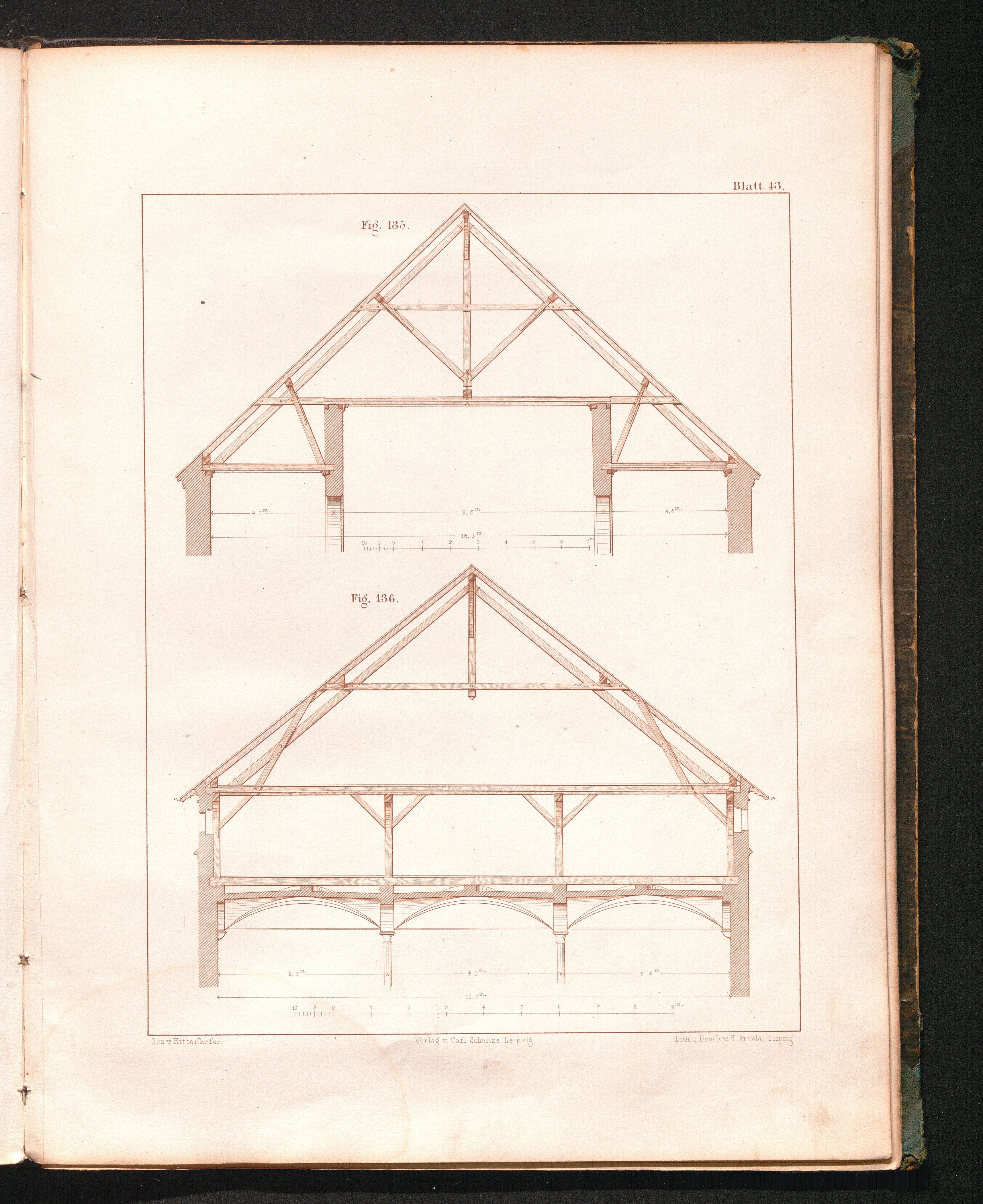 Neuere Dach-Binder : nach Spannweiten und Unterstützungen im Metermaass / sytematisch zsgest. zum Gebrauche für Architekten, Baugewerkmeister und Schüler von Architekt Hittenkofer