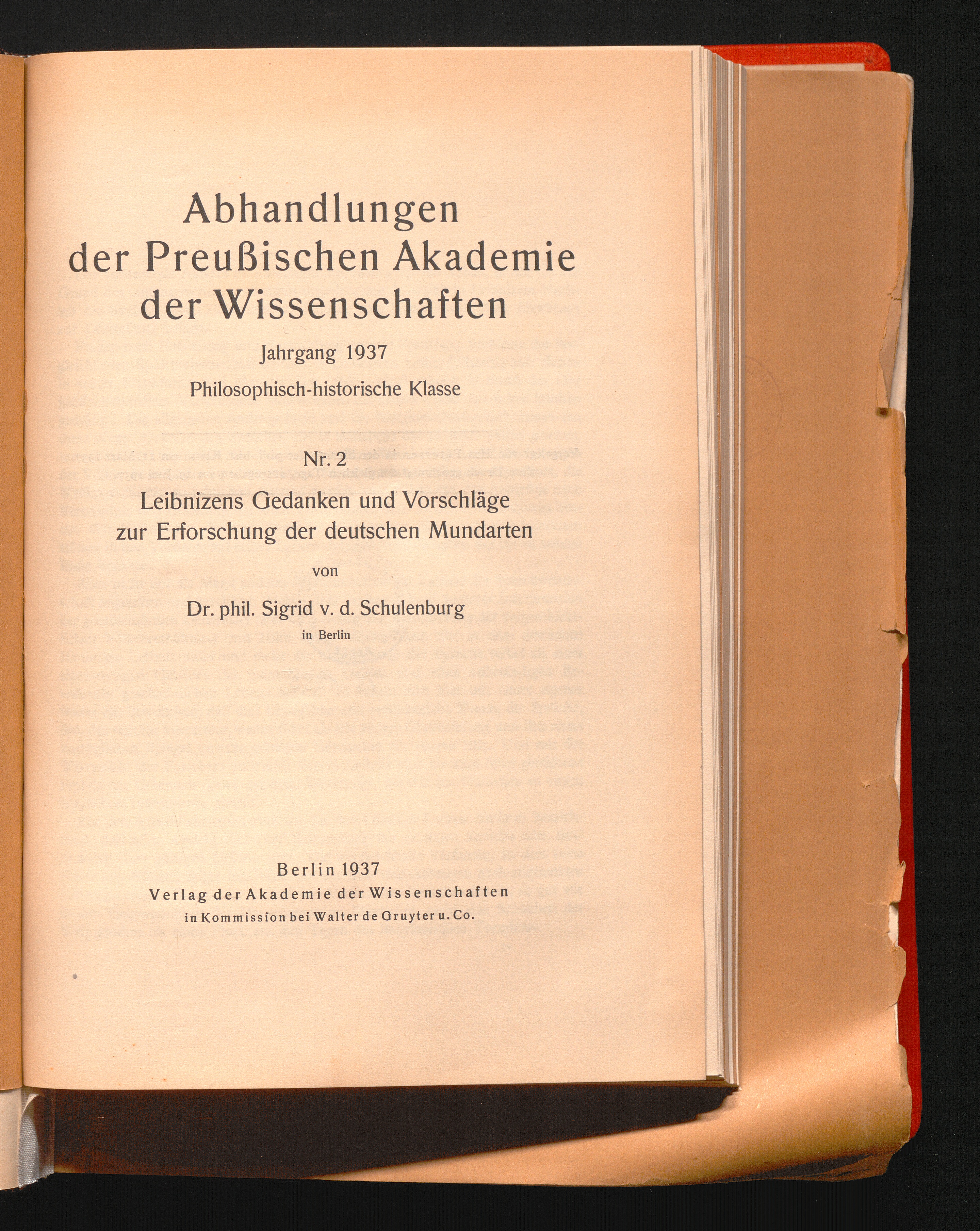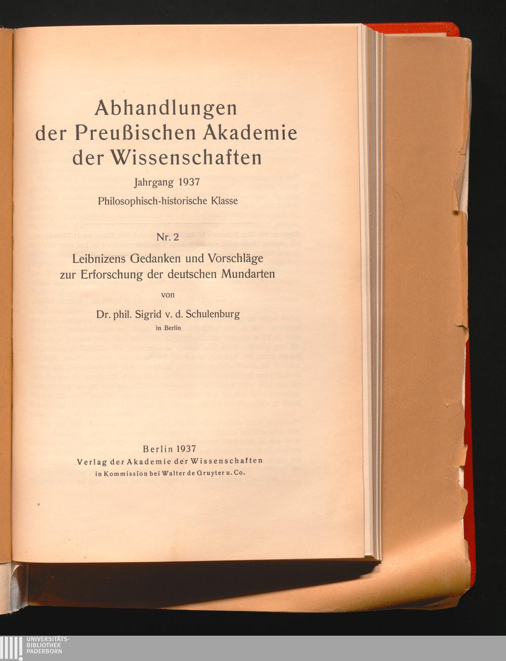 Leibnizens Gedanken und Vorschläge zur Erforschung der deutschen Mundarten / von Sigrid v. d. Schulenburg
