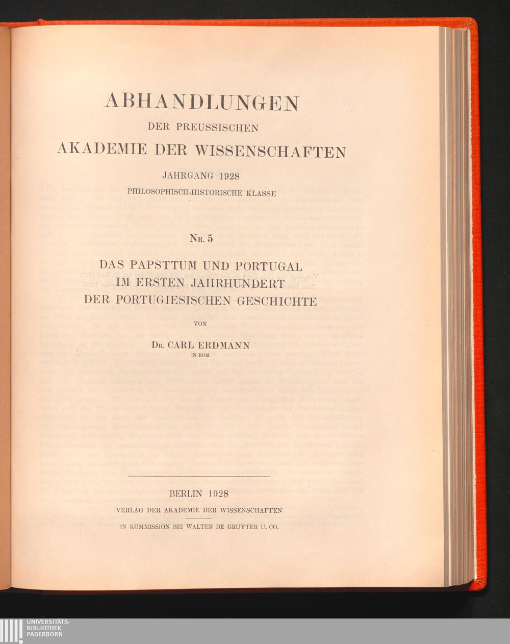 Das Papsttum und Portugal im ersten Jahrhundert der portugiesischen Geschichte / von Carl Erdmann