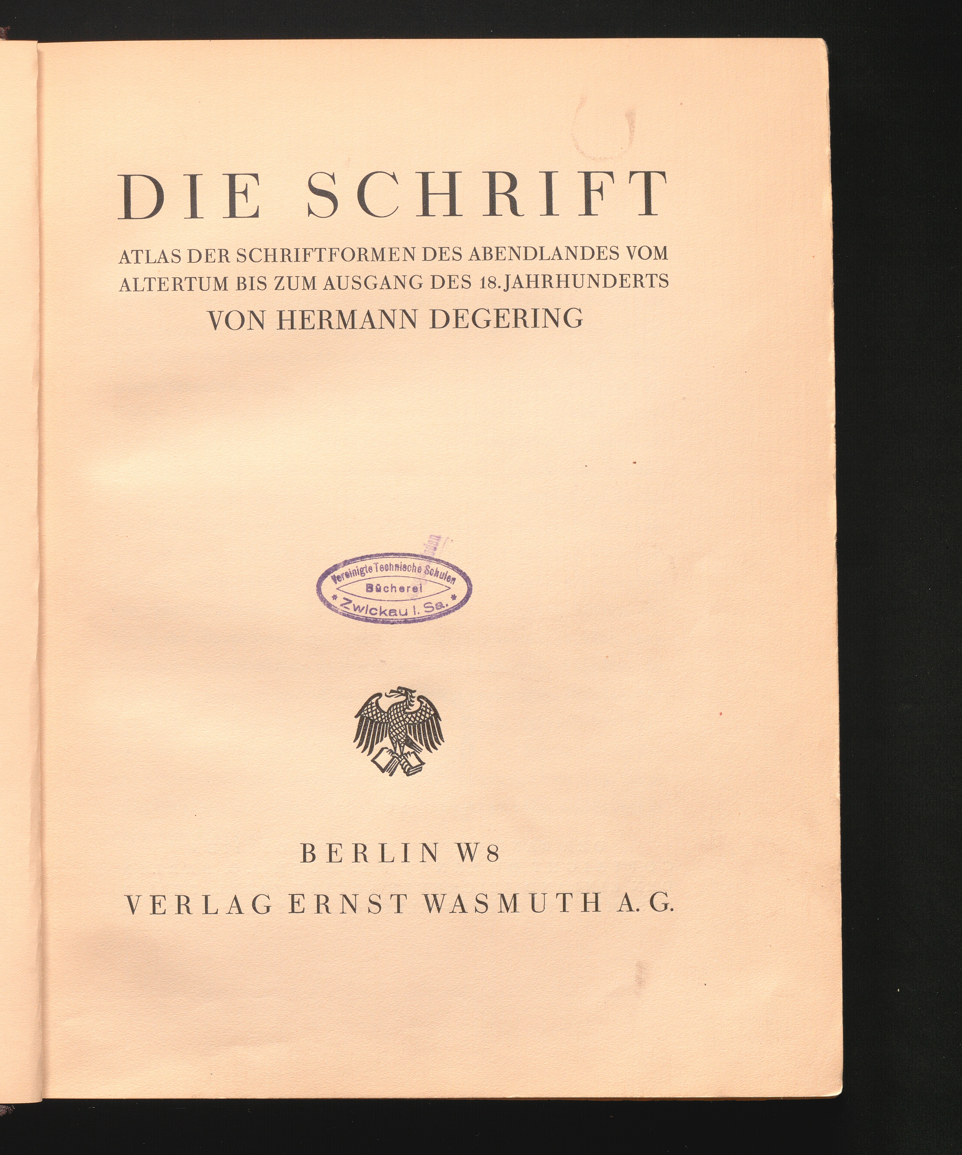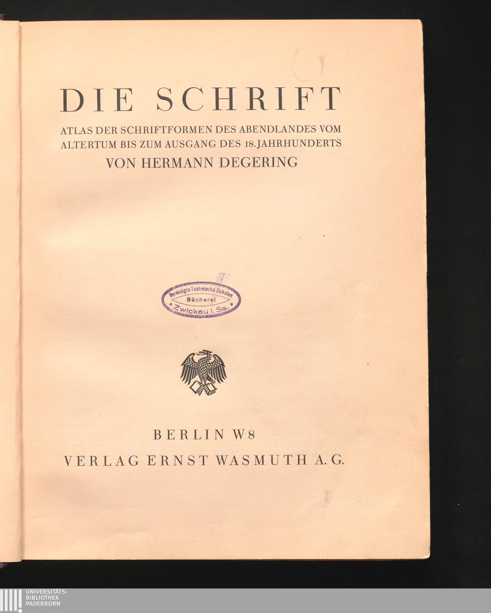 Die Schrift : Atlas der Schriftformen des Abendlandes vom Altertum zum Ausgang des 18. Jahrhunderts / von Hermann Degering