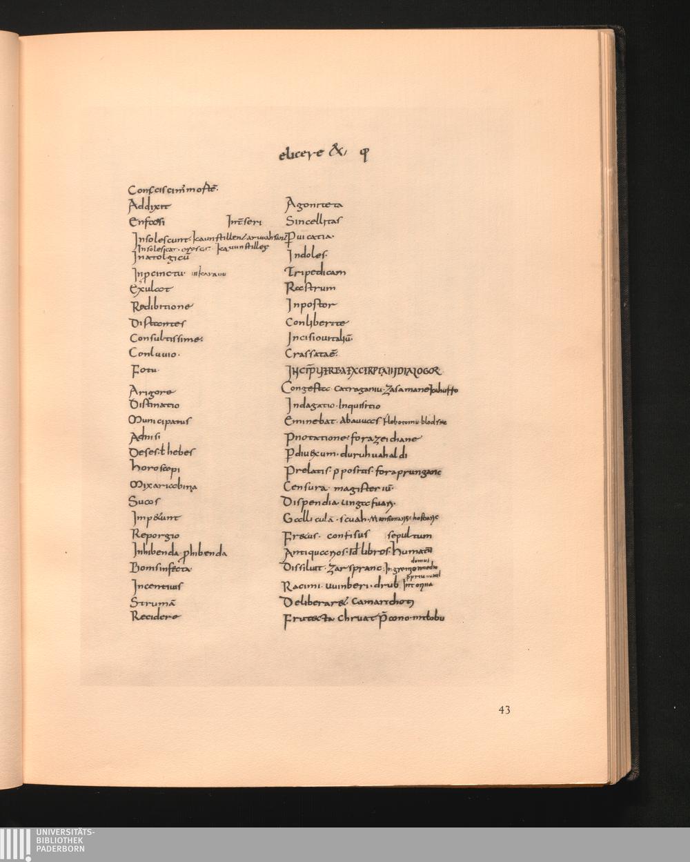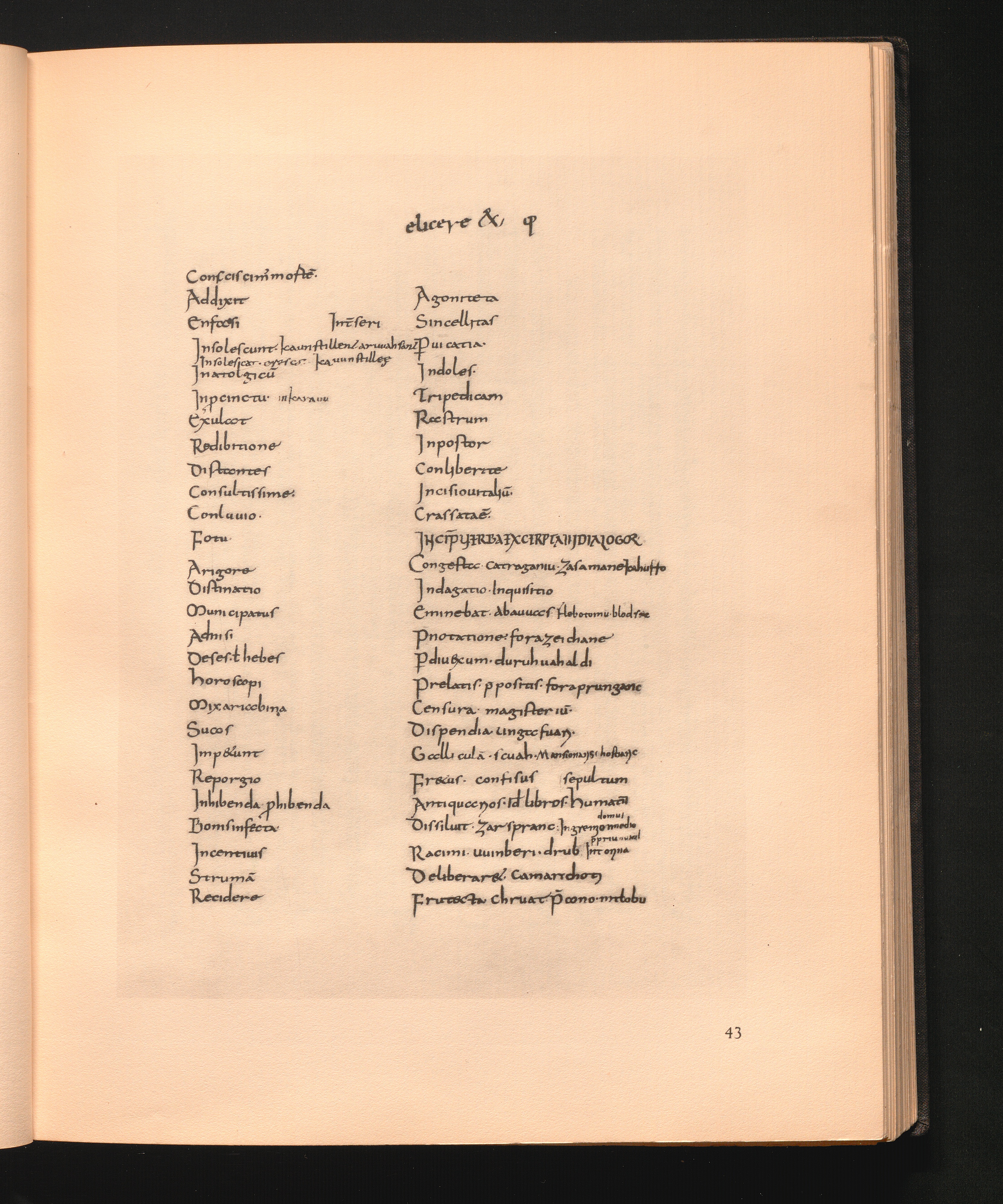 43 Althochdeutsche Glossen. Reichenauer Fragmente, 9. Jahrh. Berlin, Ms. lat. qrt.[...]