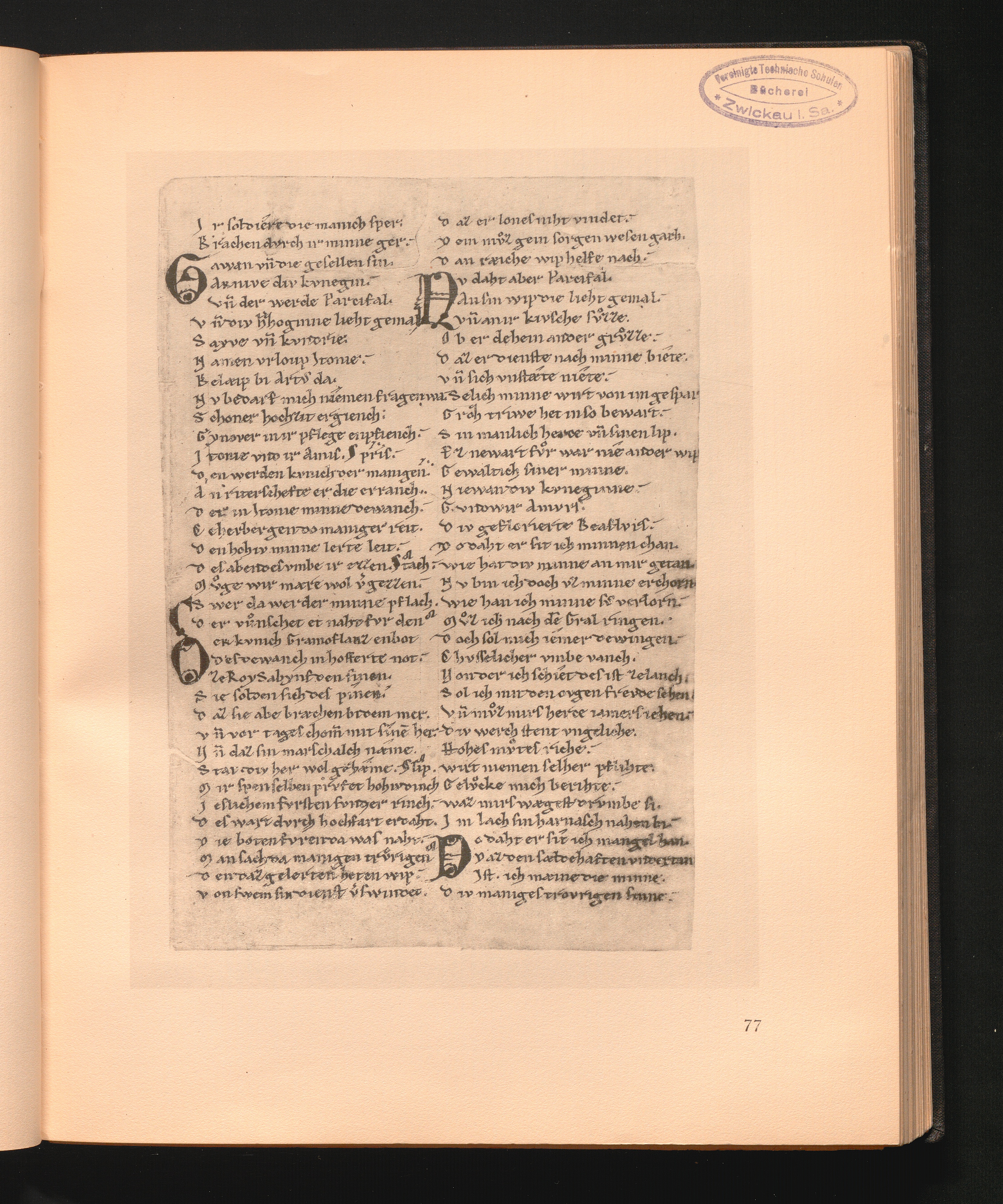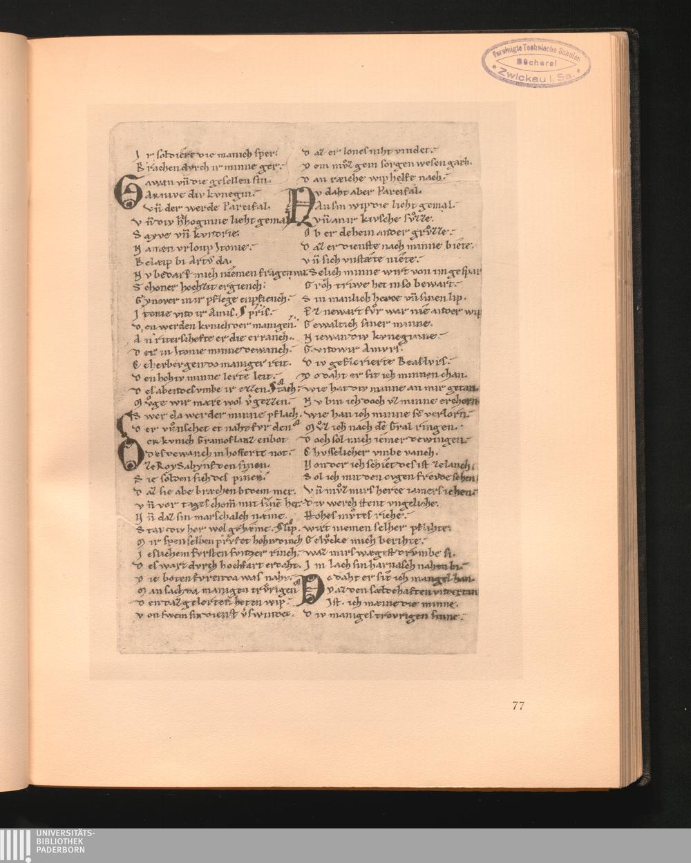77 Wolfram von Eschenbach: Parzival. Fragm. 13. Jahrh. Berlin, Ms. Germ. fol. 923,[...]