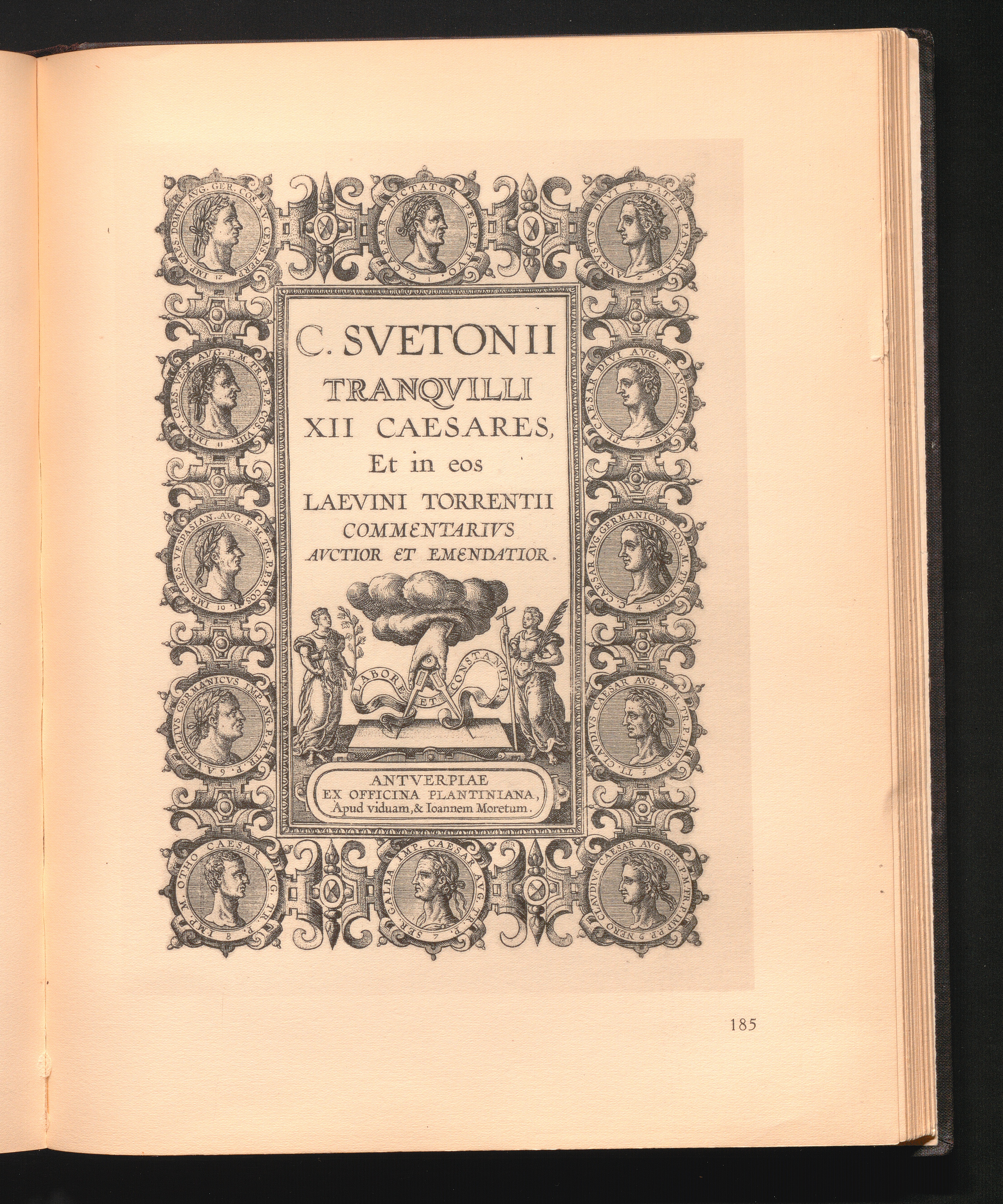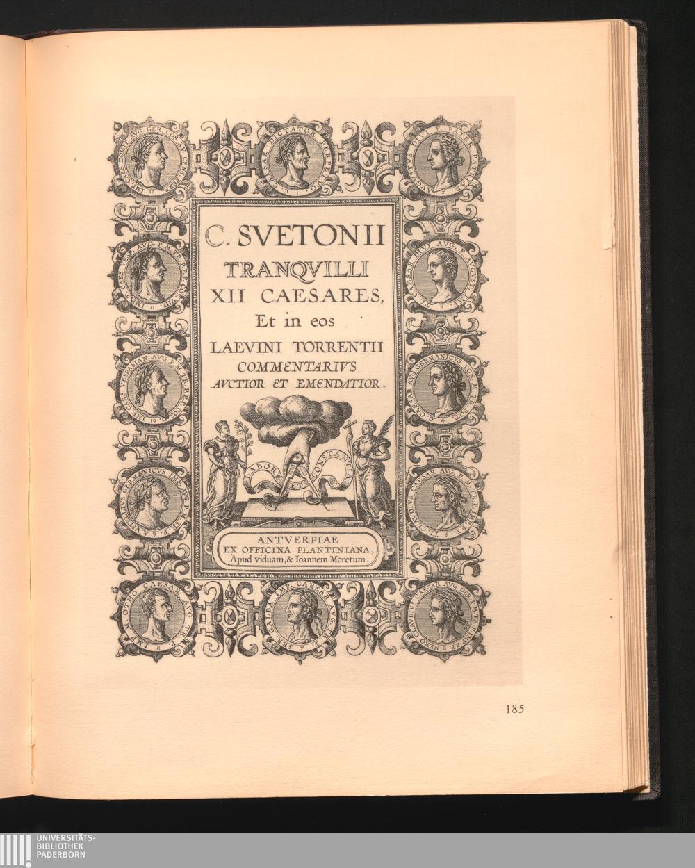 185 Antwerpen, Officina Plantiniana. Kupfertitel der Ausgabe von Suetons vitae XII[...]