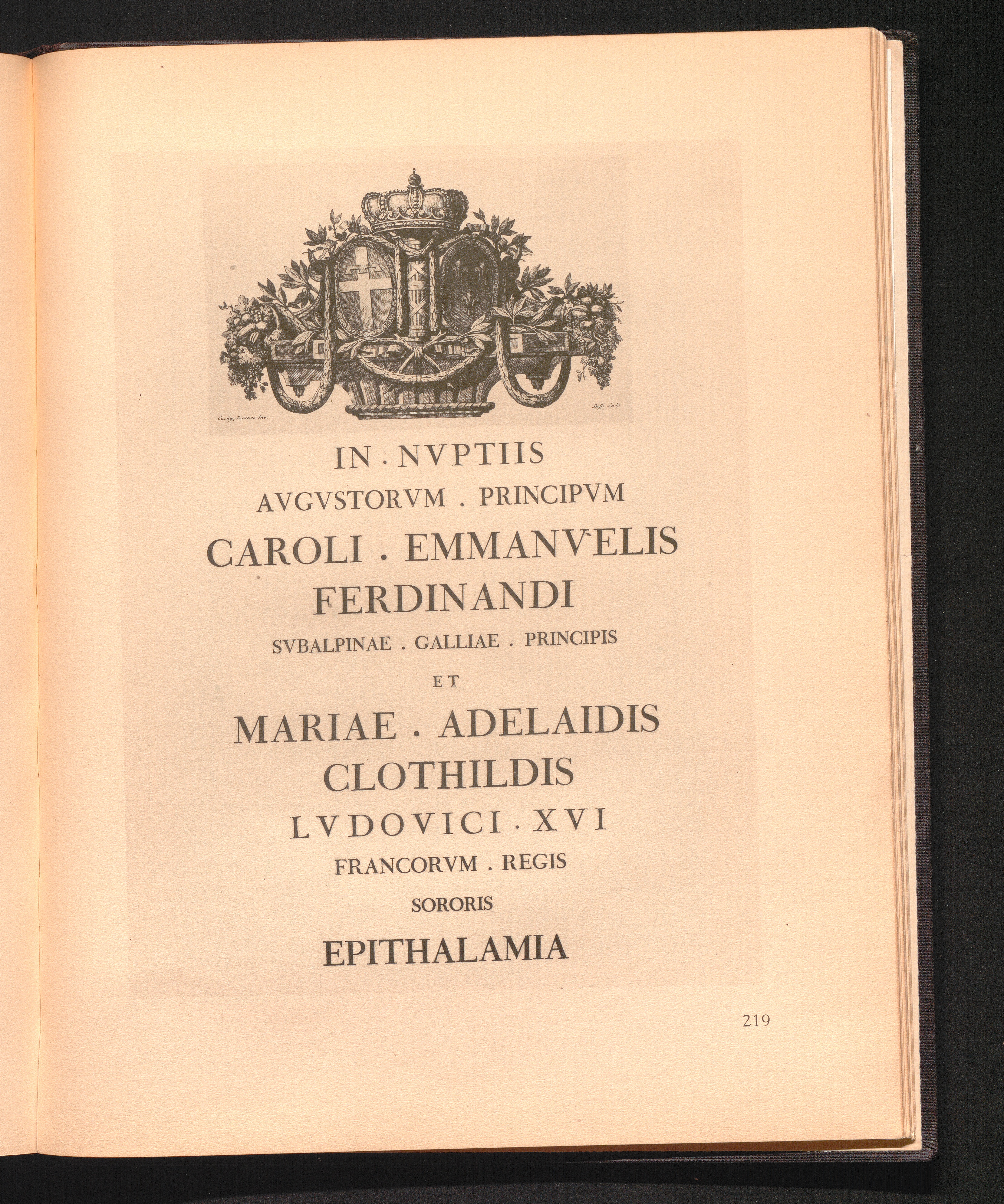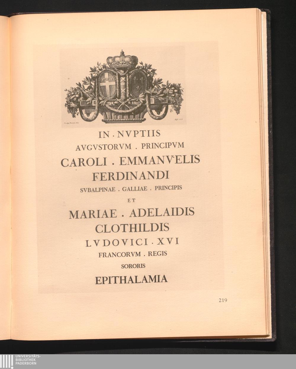 219 Ephitalamia (in nuptiis Caroli Emmanuelis Ferdinandi Subalpinae, Galliae principis)[...]