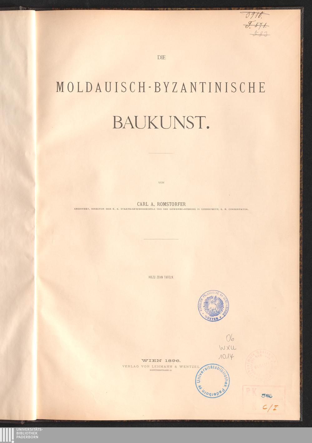 Die moldauisch-byzantinische Baukunst / von Carl A. Romstorfer