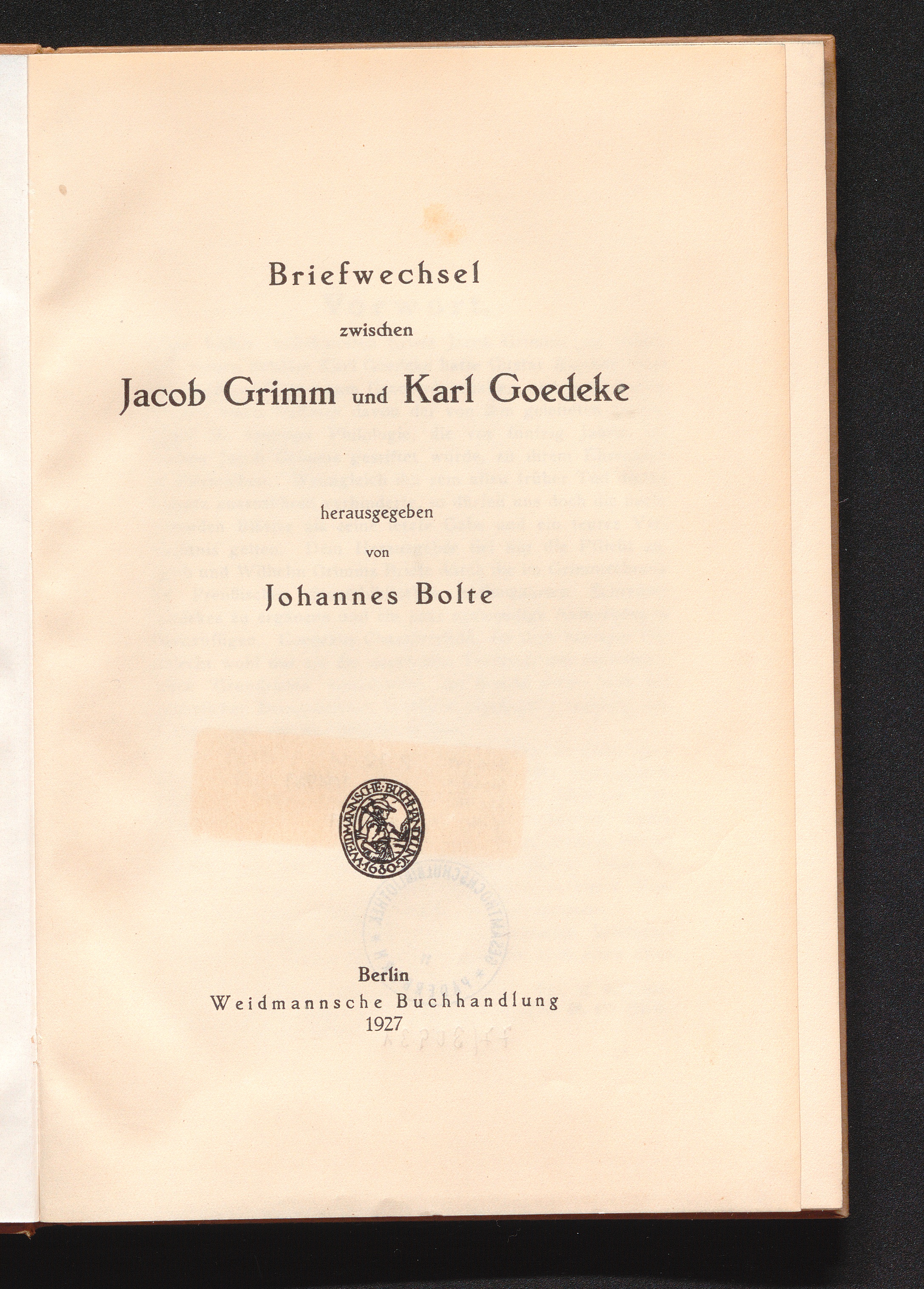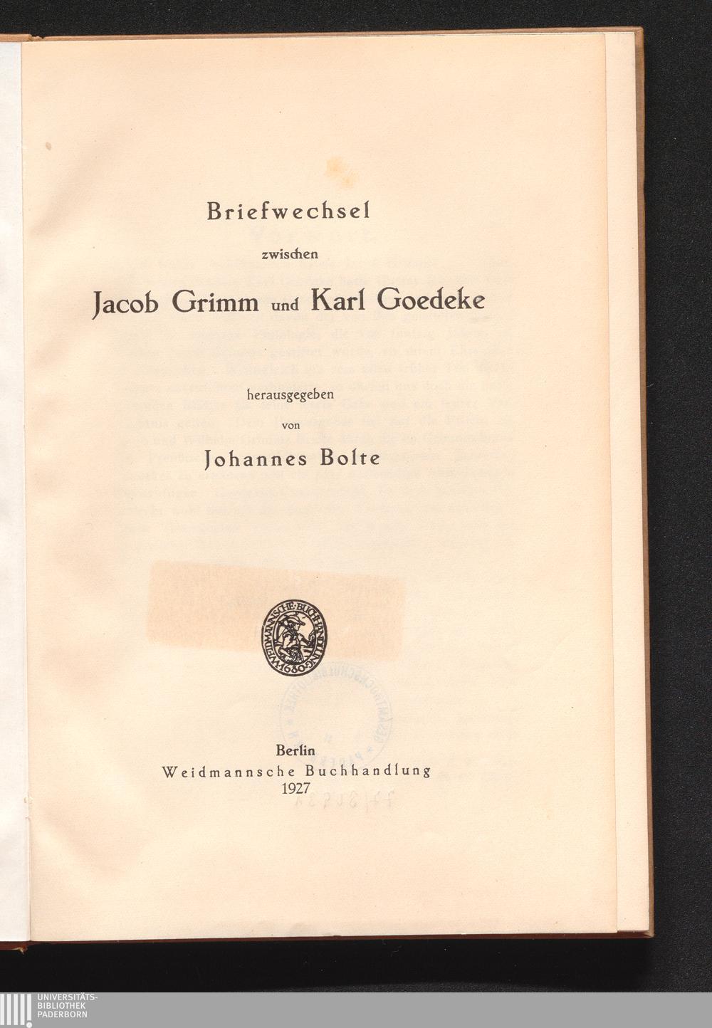 Briefwechsel zwischen Jacob Grimm und Karl Goedeke / hrsg. von Johannes Bolte