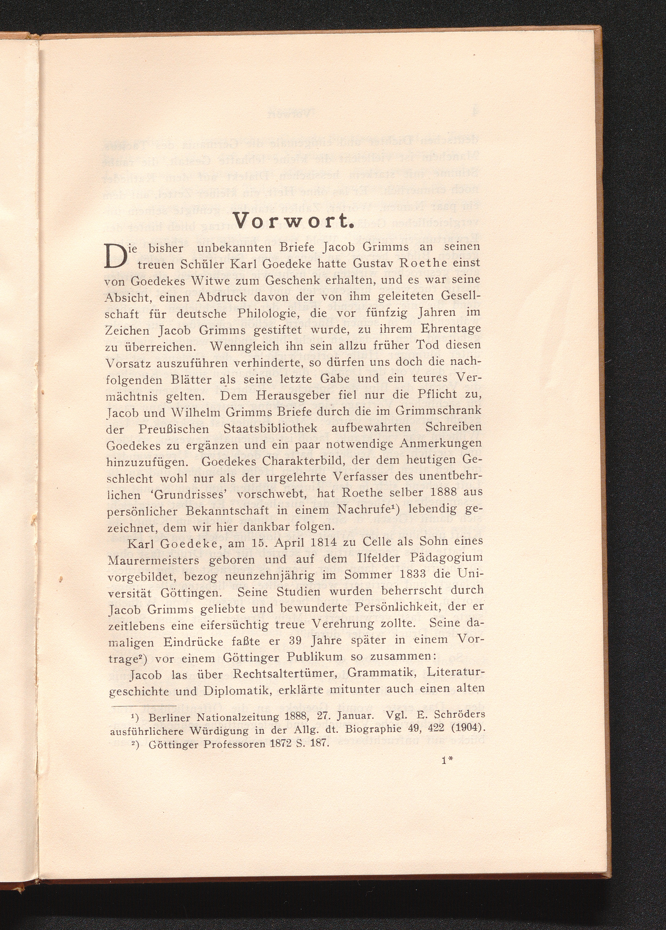 Briefwechsel zwischen Jacob Grimm und Karl Goedeke / hrsg. von Johannes Bolte