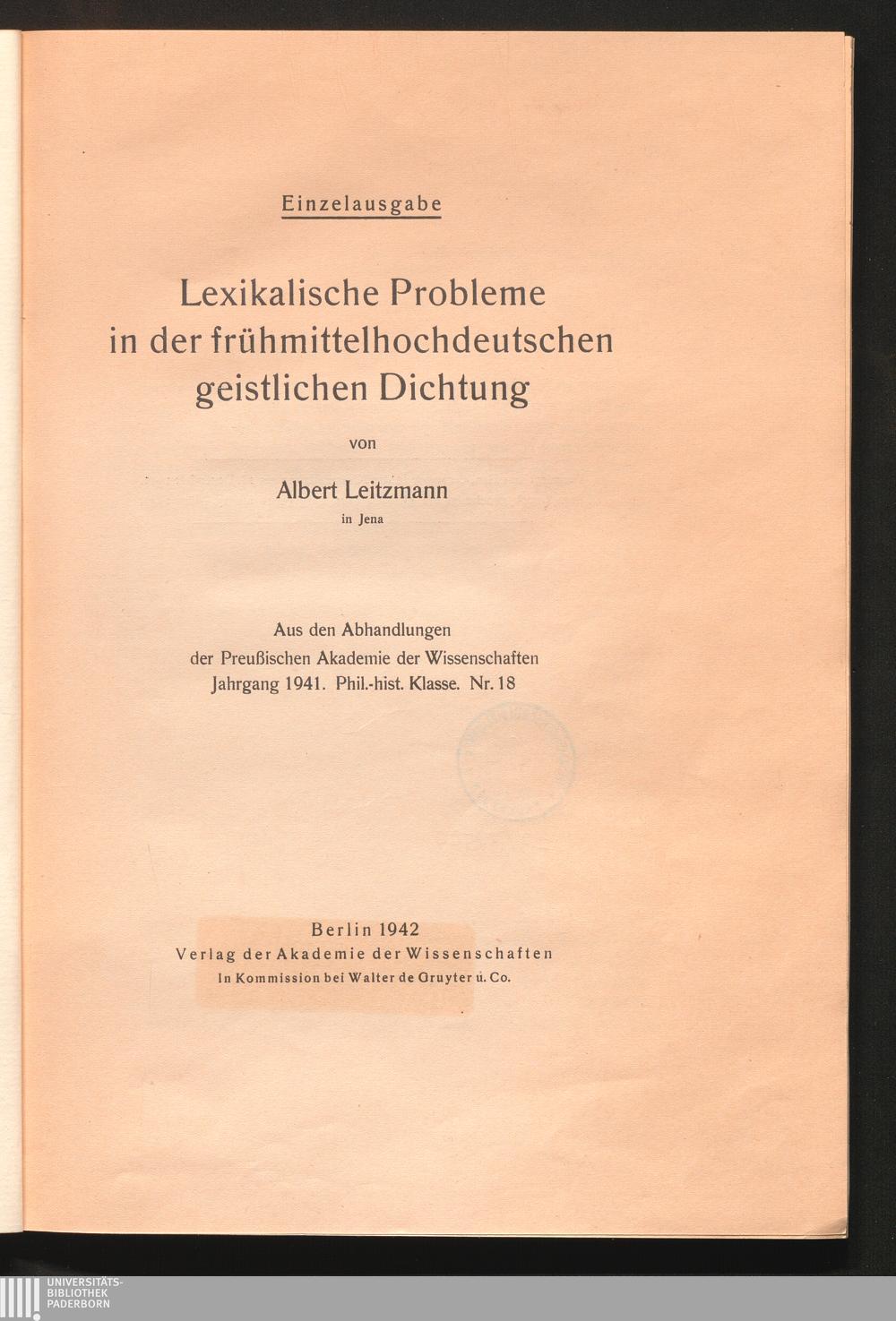 Lexikalische Probleme in der frühmittelhochdeutschen geistlichen Dichtung