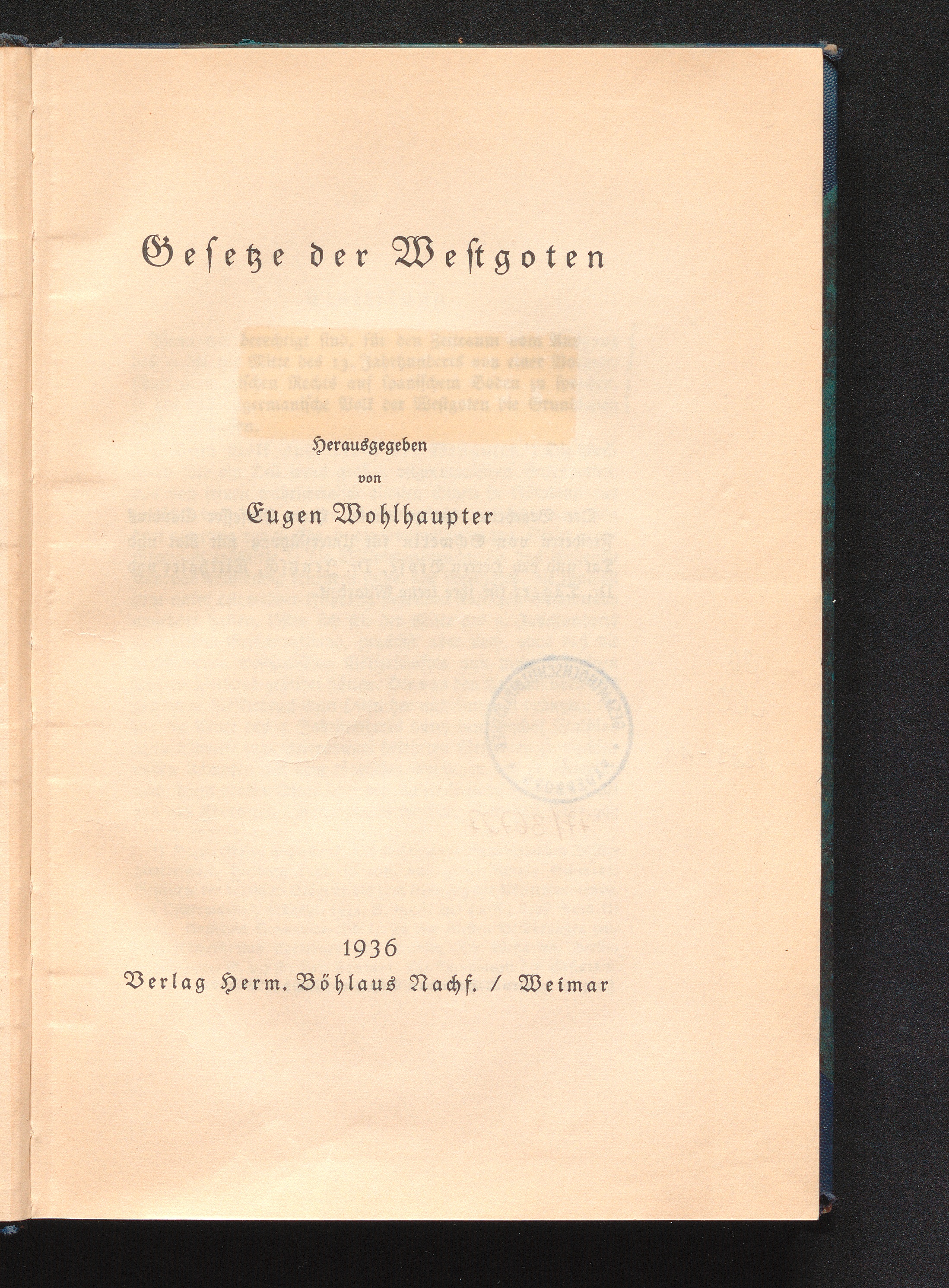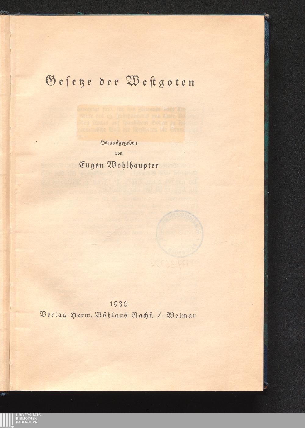 Gesetze der Westgoten / hrsg. von Eugen Wohlhaupter