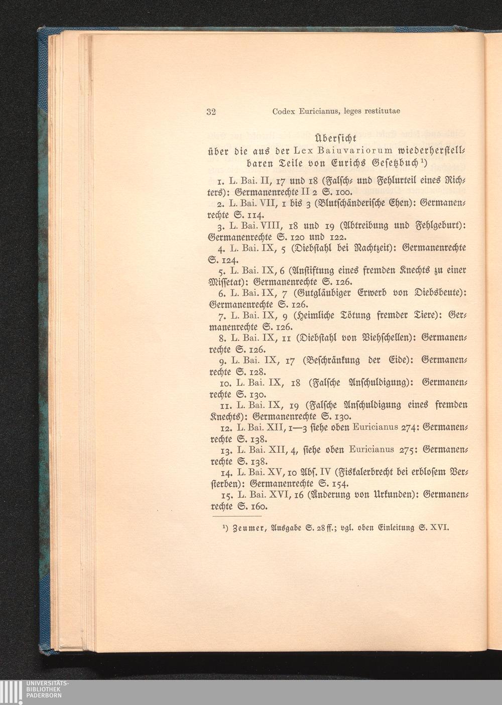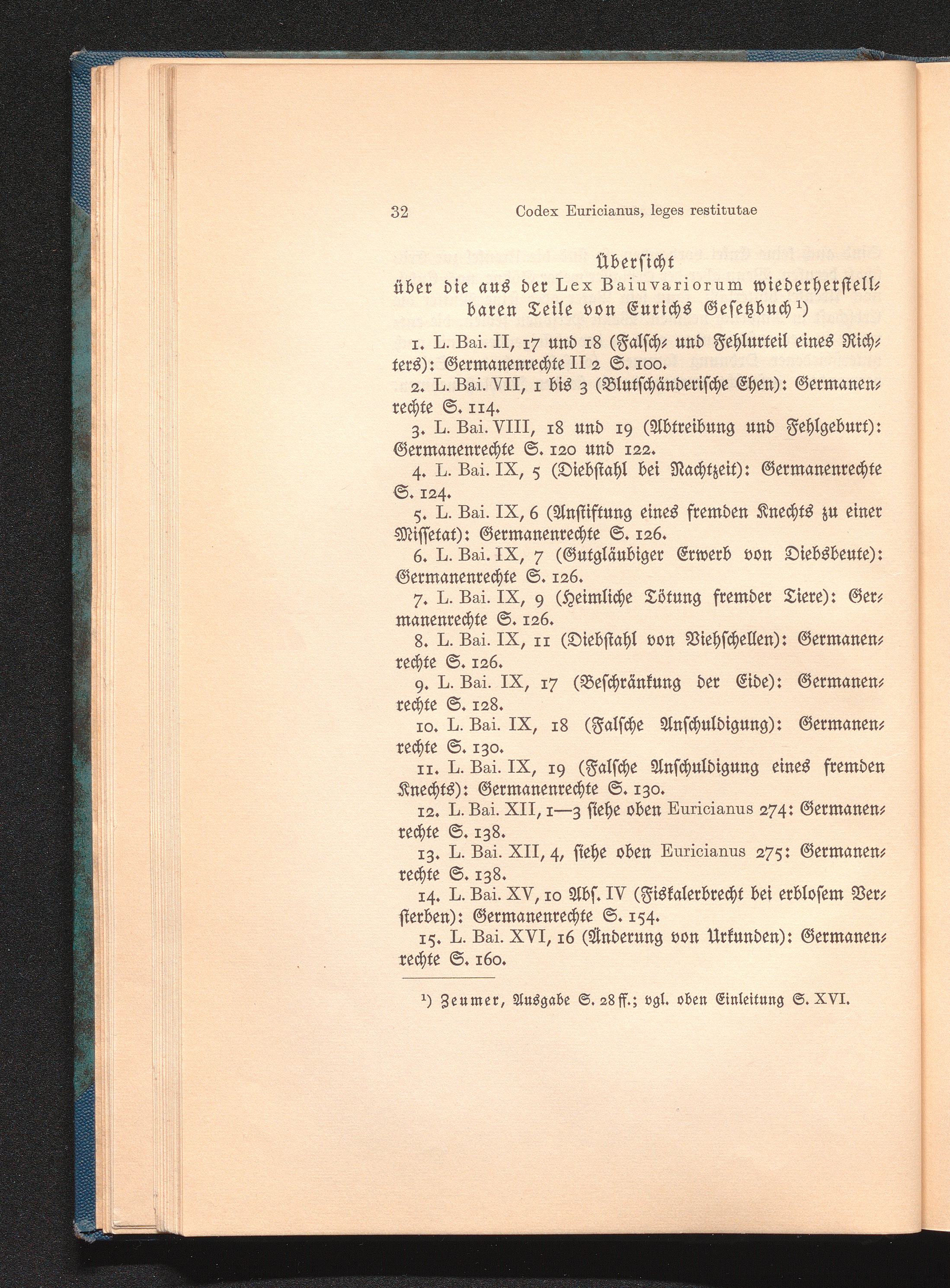 Übersicht über die aus der Lex Baiuvariorum wiederherstellbaren Teile von Eurichs[...]