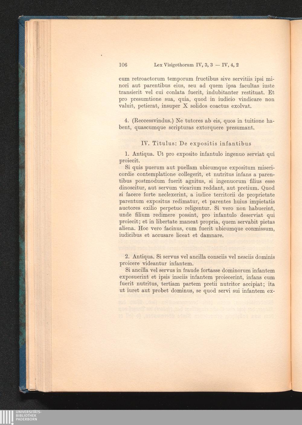 IV. Titulus: De expositis infantibus // IV. Titel: Von ausgesetzten Kindern