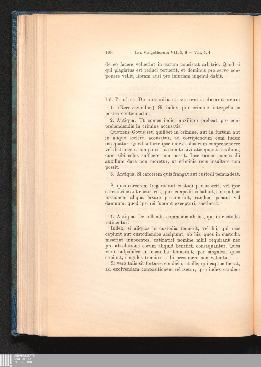 IV. Titulus: De custodia et sententia damnatorum // IV. Titel: Von Verhaftung und[...]