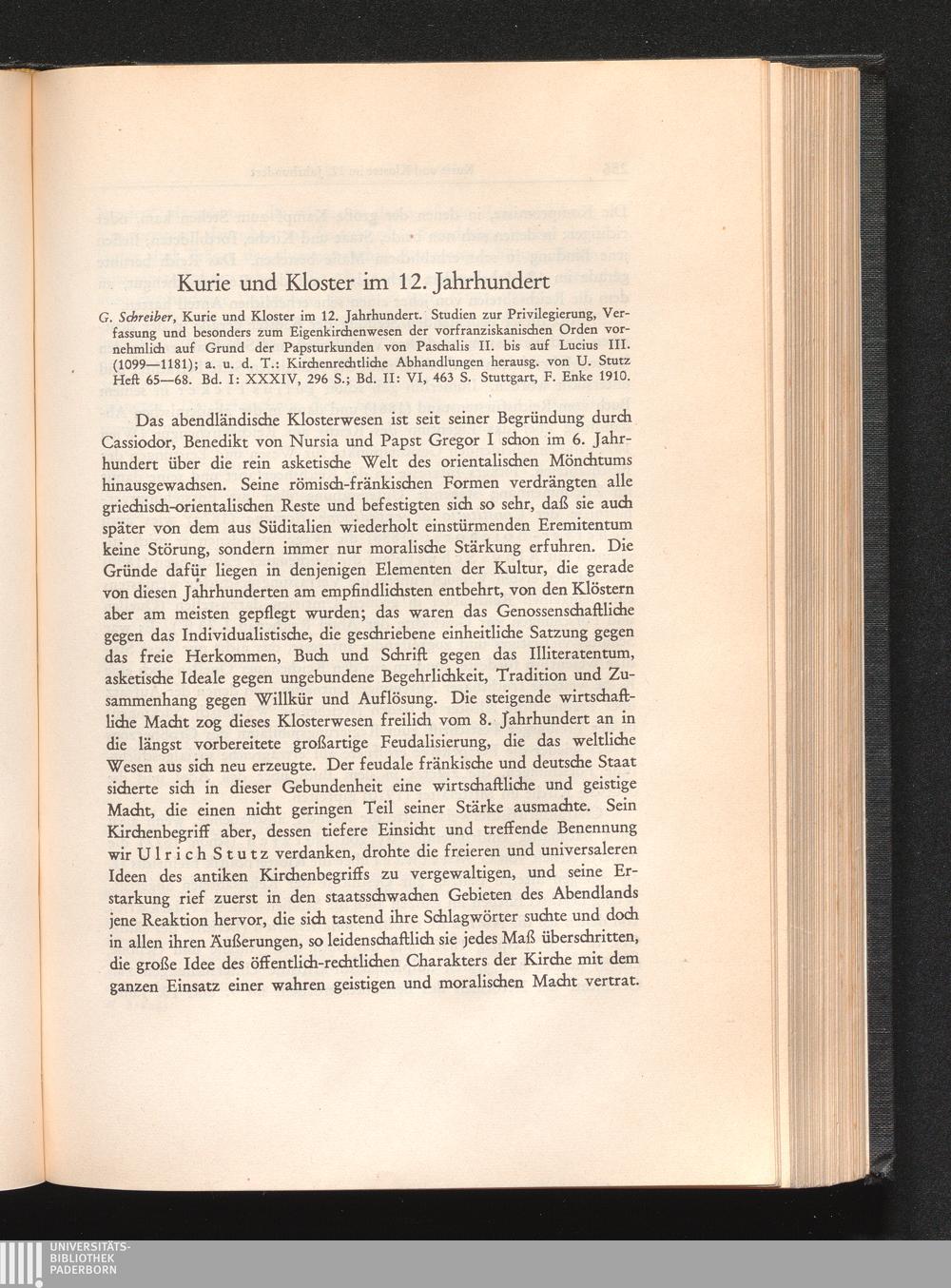 Kurie und Kloster im 12. Jahrhundert (1912) Zeitschrift der Savignystiftung für Rechtsgeschichte[...]