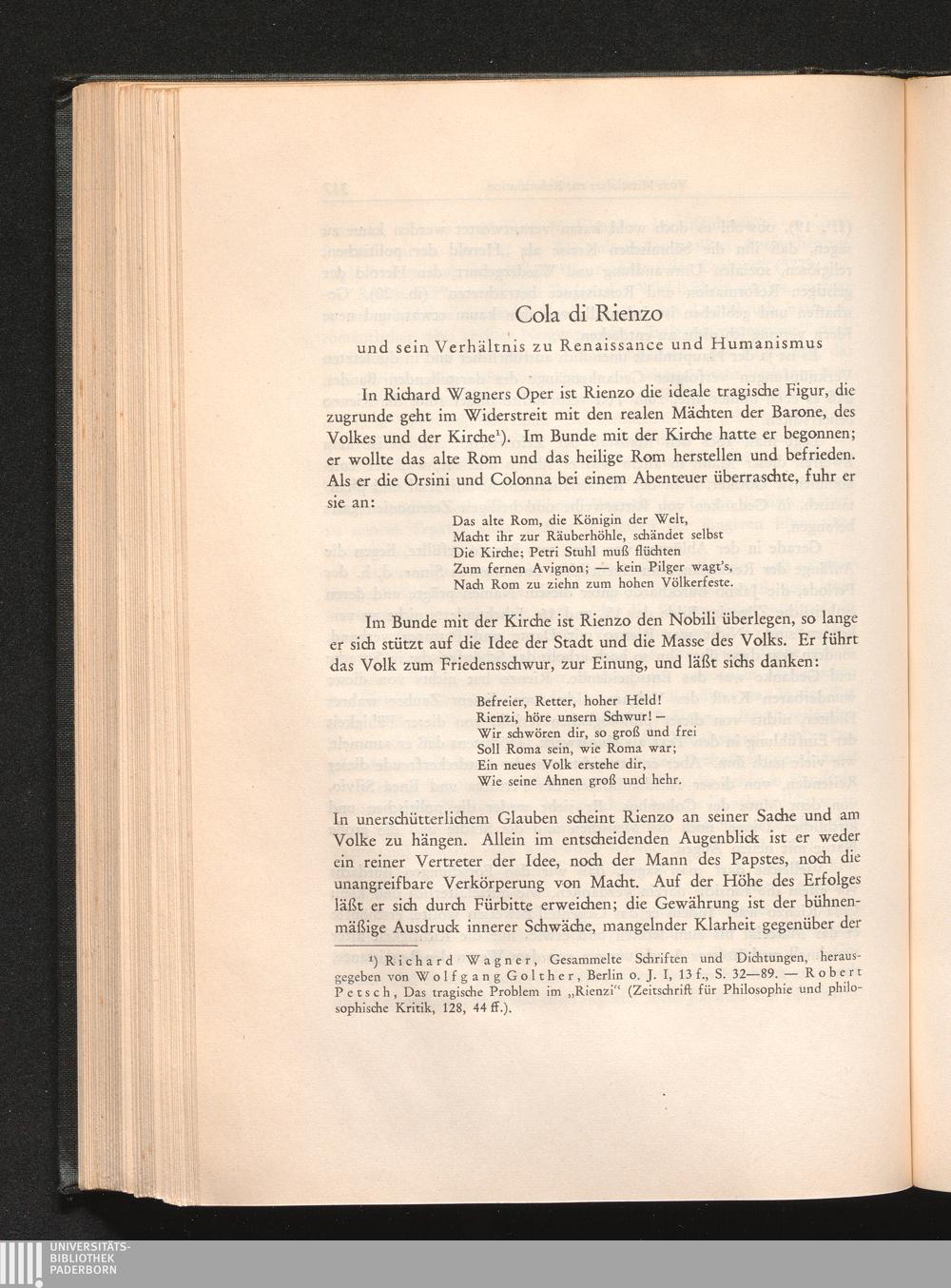 Cola di Rienzo und sein Verhältnis zu Renaissance und Humanismus (1928). Vorträge[...]