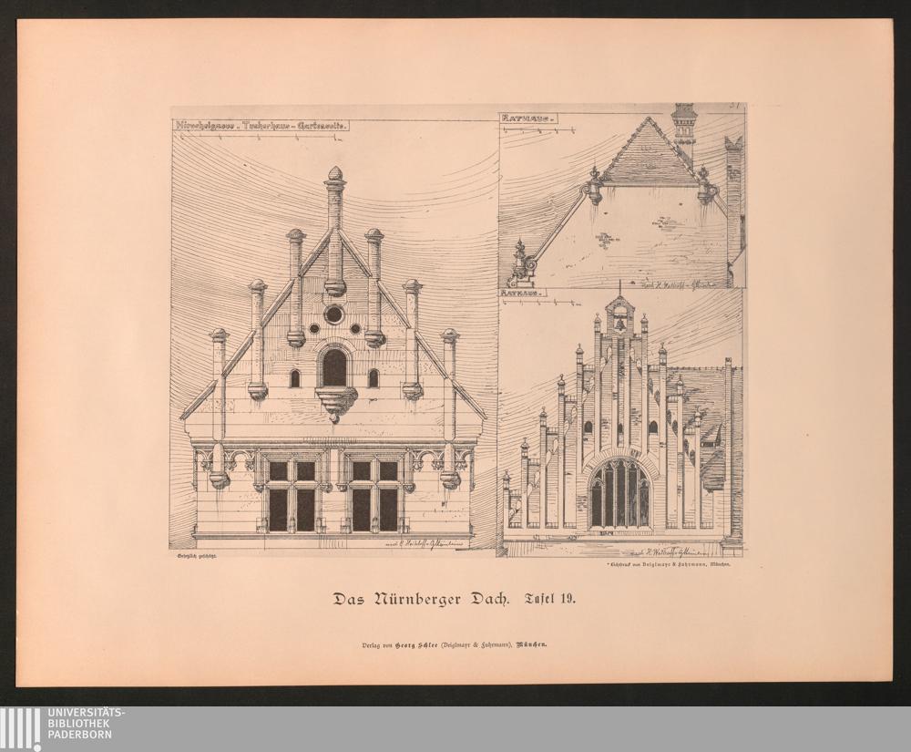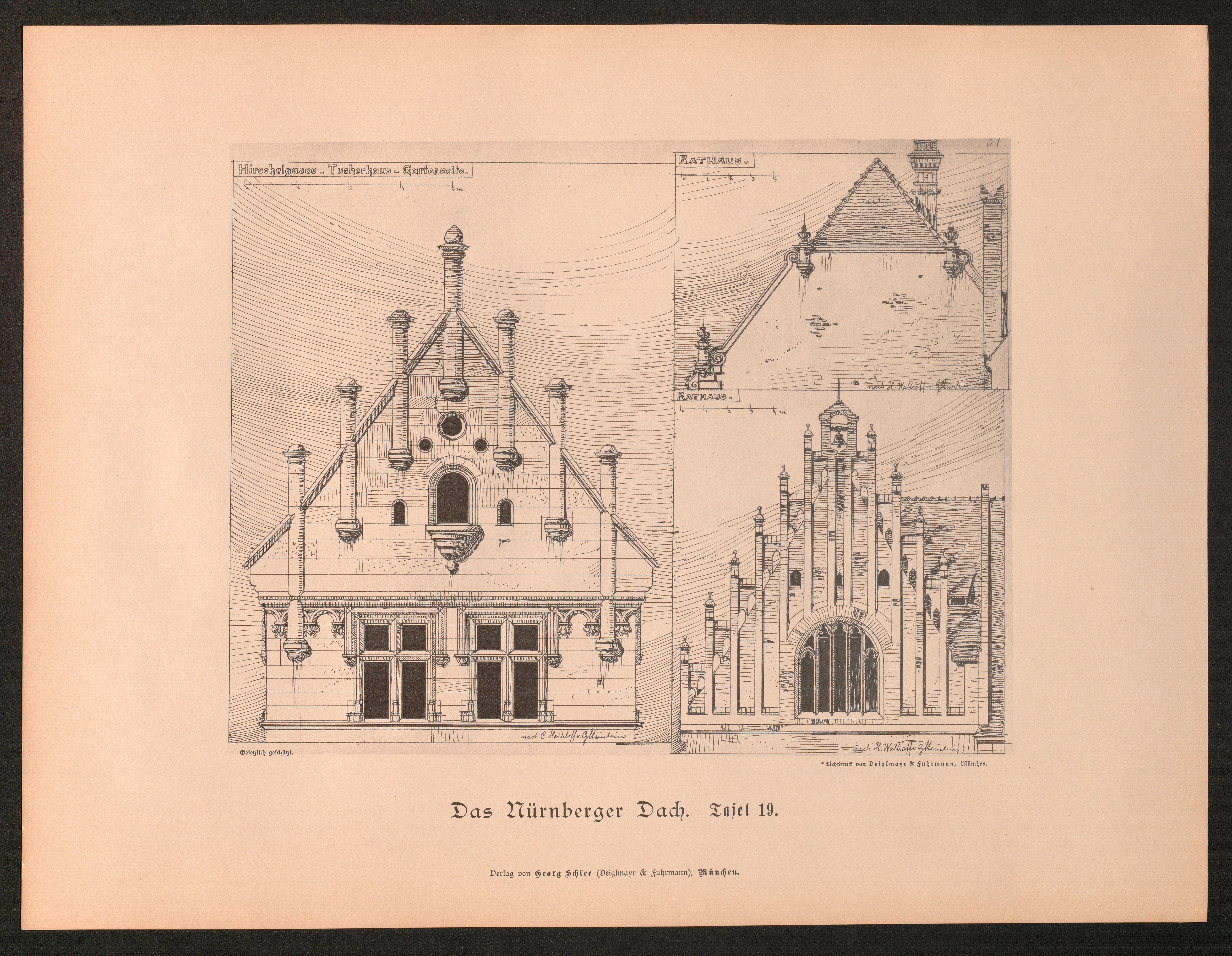 Tafel 19. Hirschelgasse - Tucherhaus - Gartenseite. Rathaus.