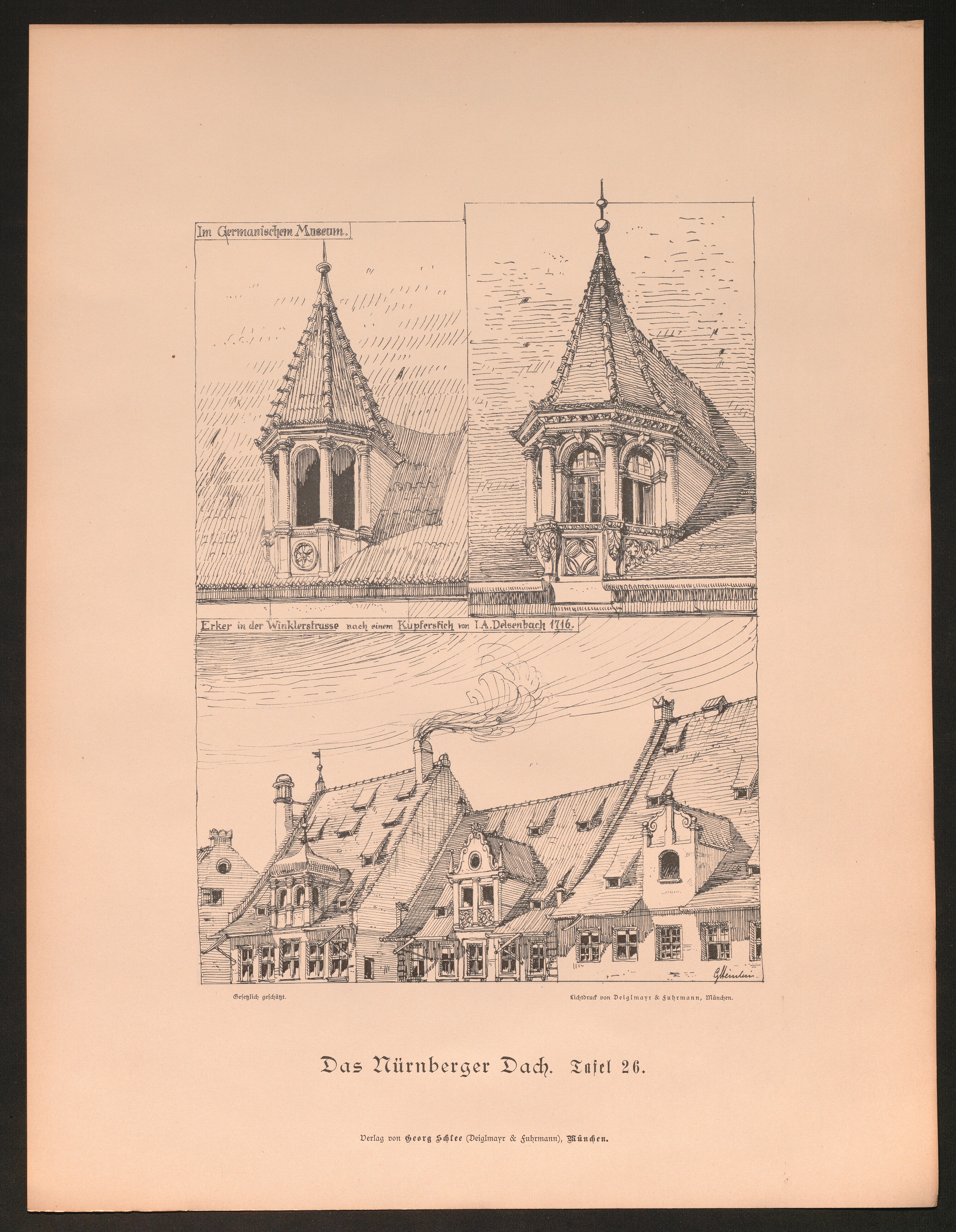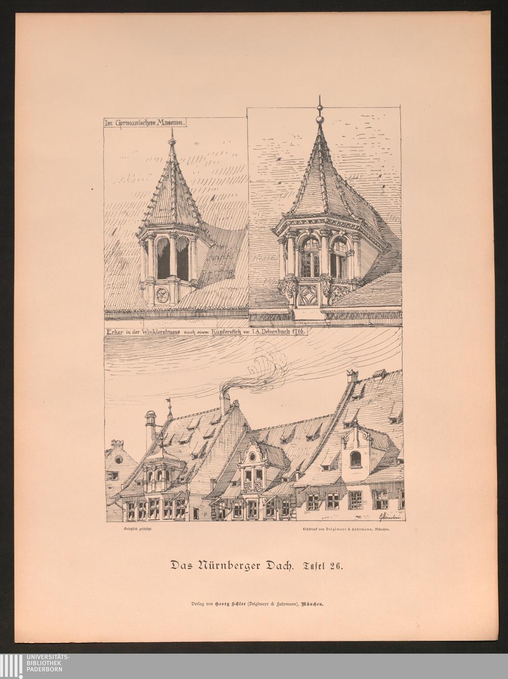 Tafel 26. Im Germanischen Museum. Erker in der Winklerstrasse nach einem Kupferstich[...]