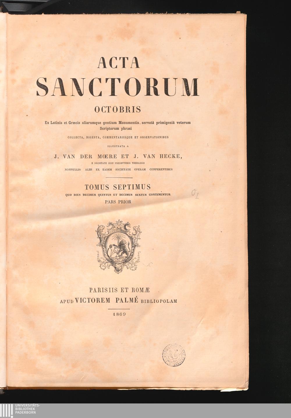 October T. 7, Quo dies decimus quintus et decimus sextus continentur ; P. 1 (1869)