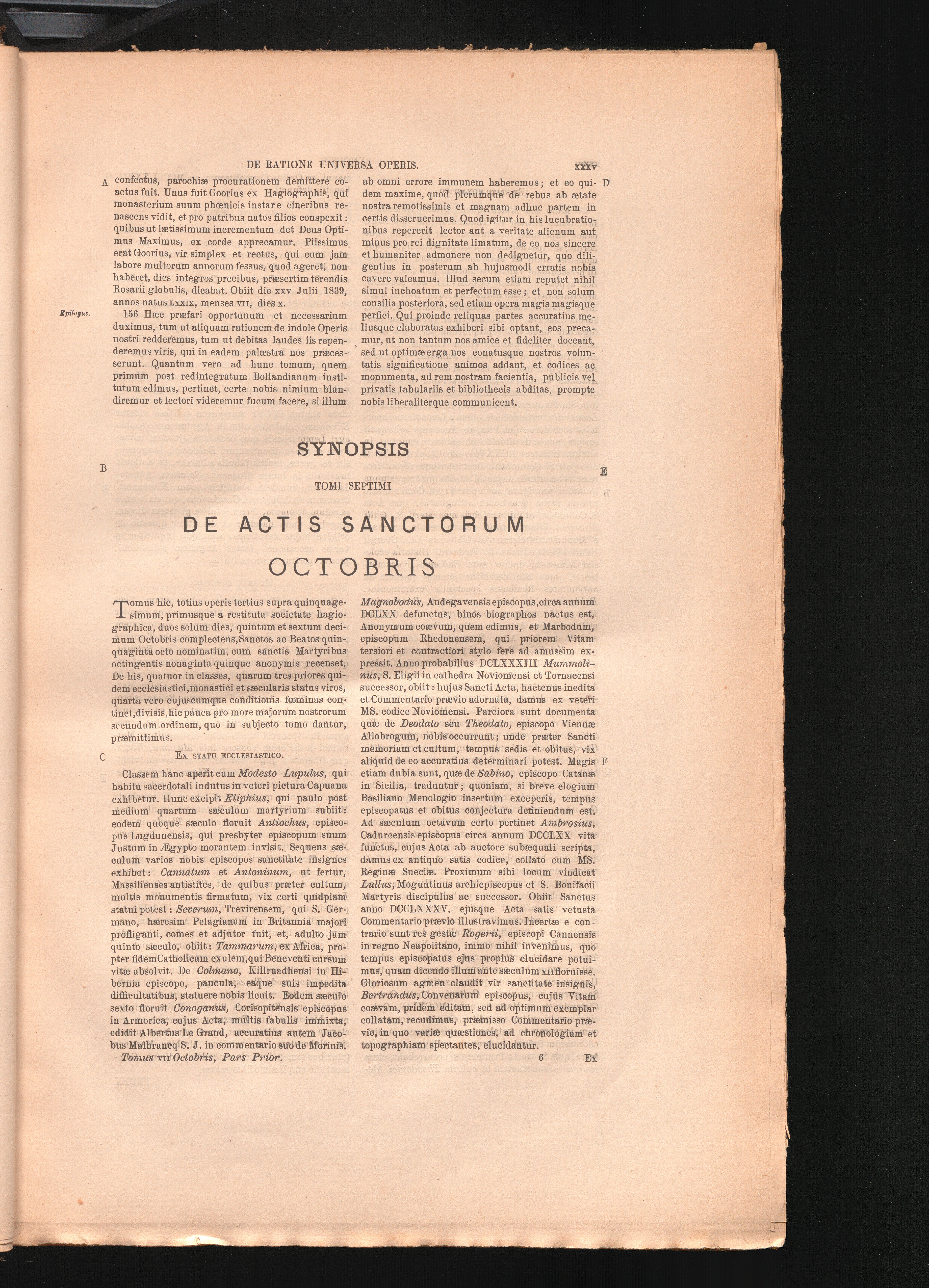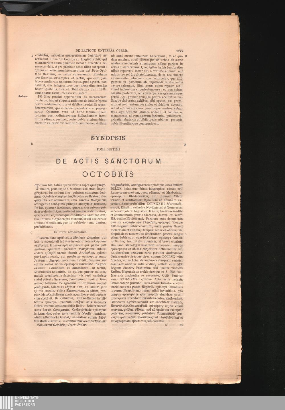 Synopsis Tomi Septimi De Actis Sanctorum Octobris