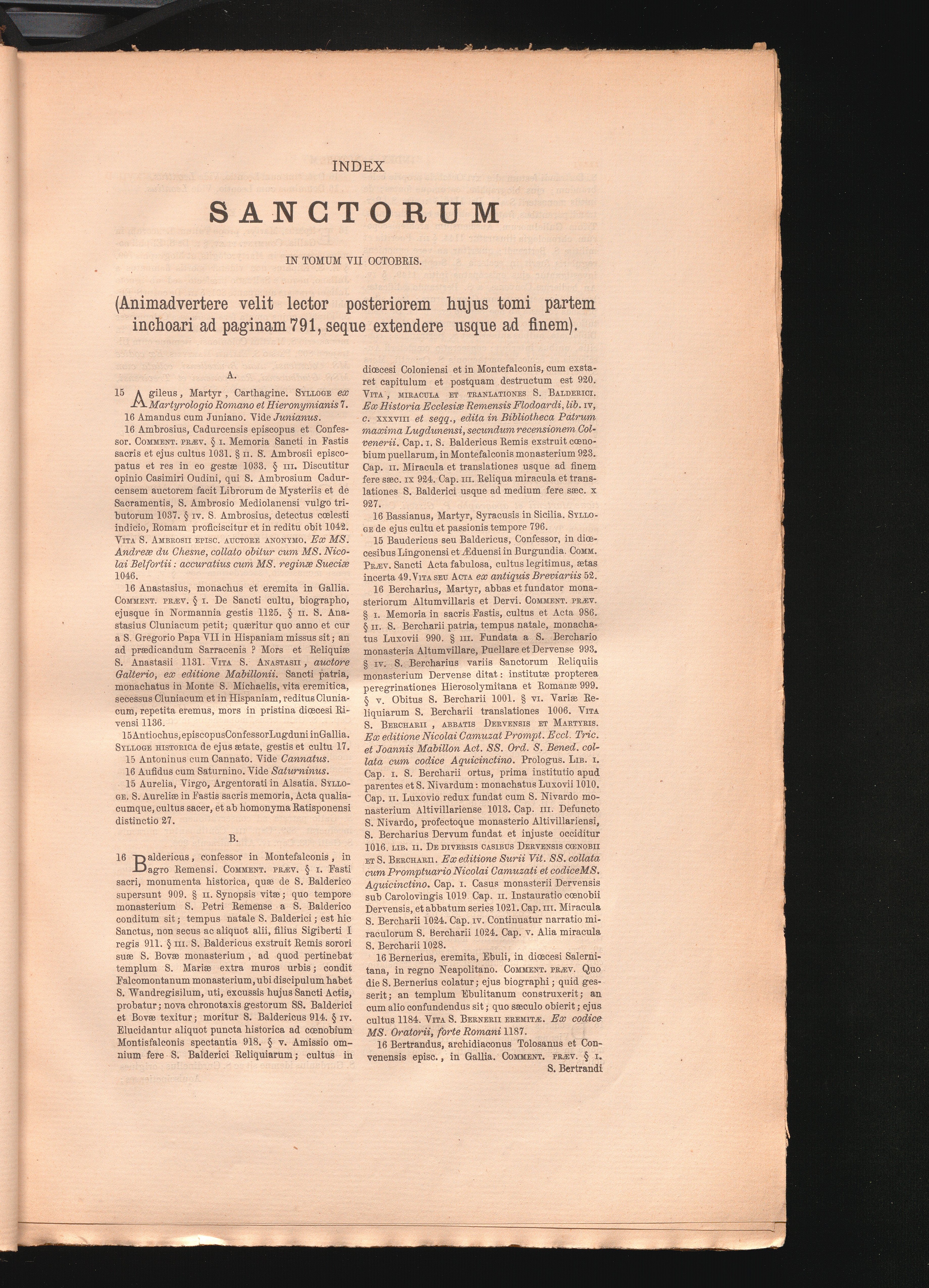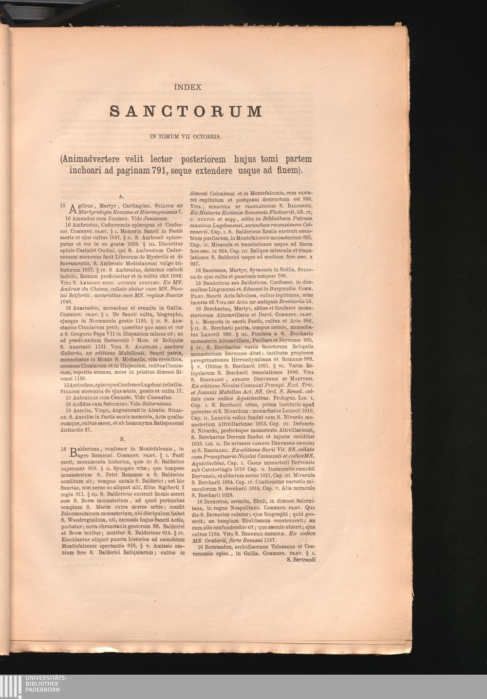 Index Sanctorum In Tomum VII Octobris.
