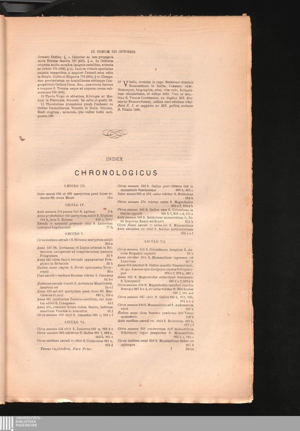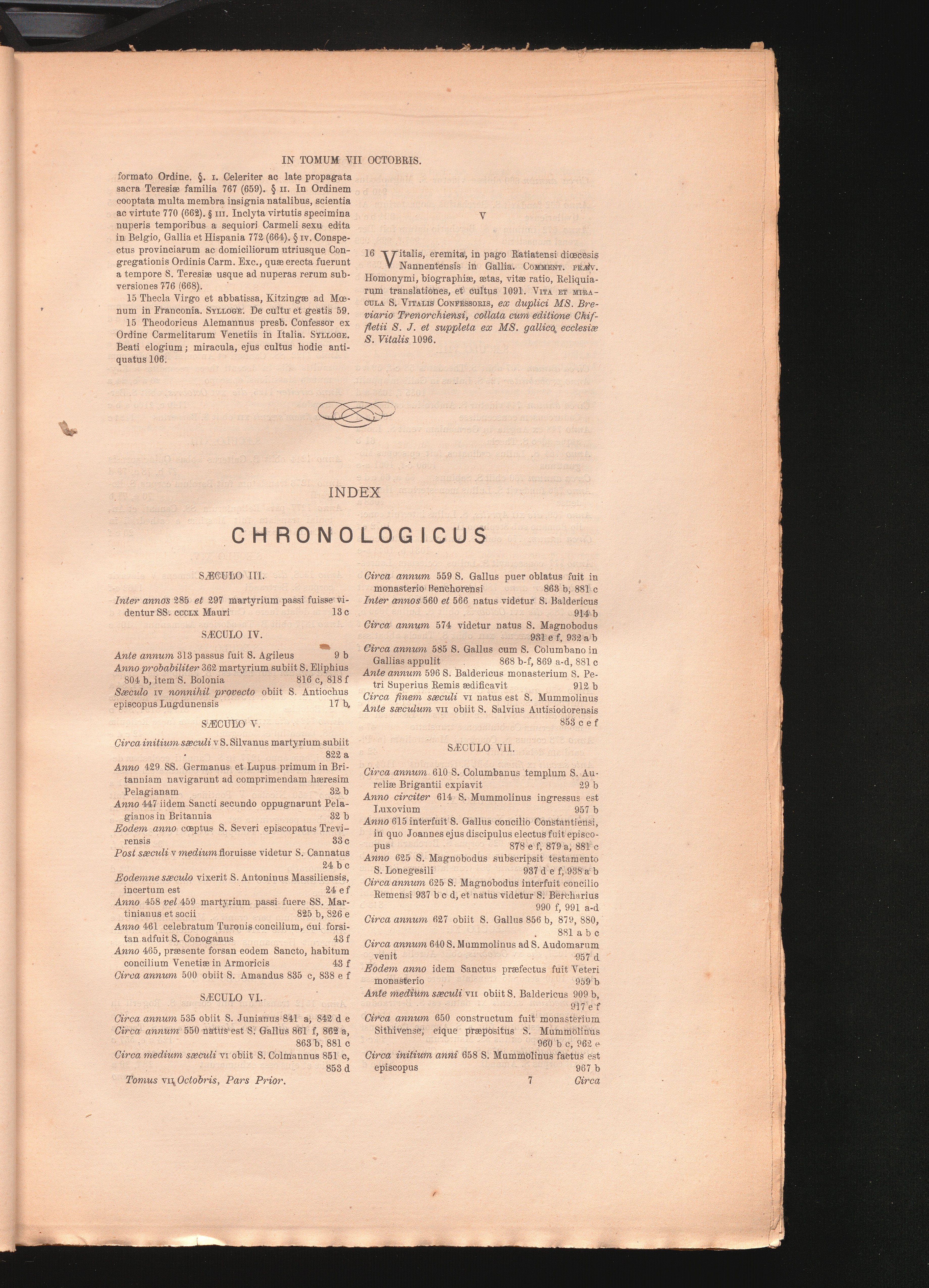 October T. 7, Quo dies decimus quintus et decimus sextus continentur ; P. 1