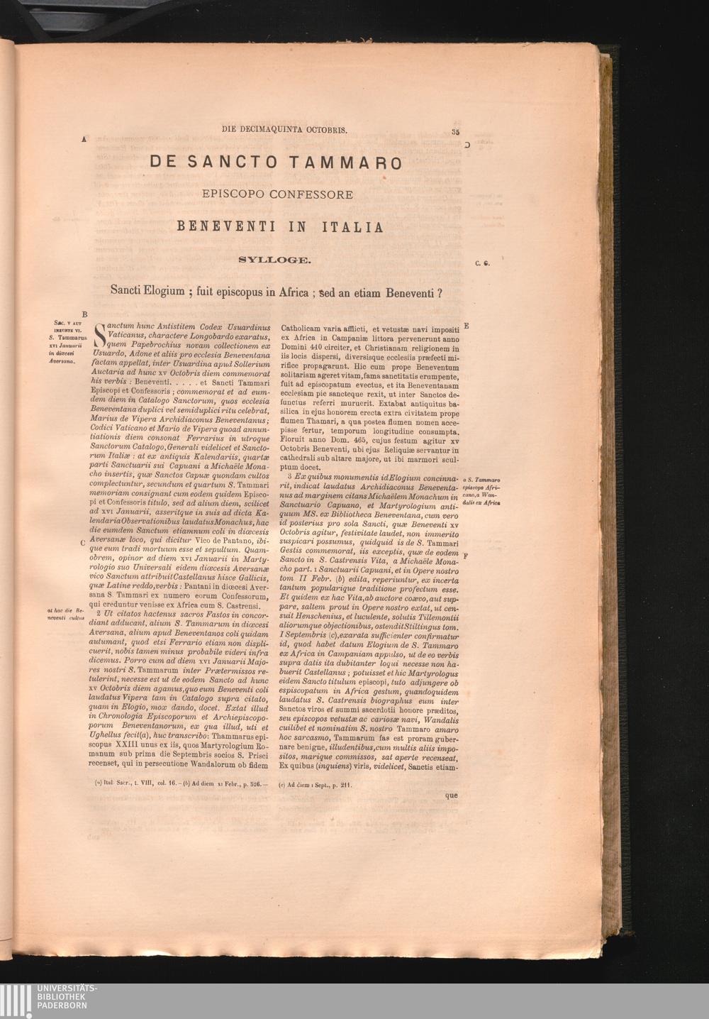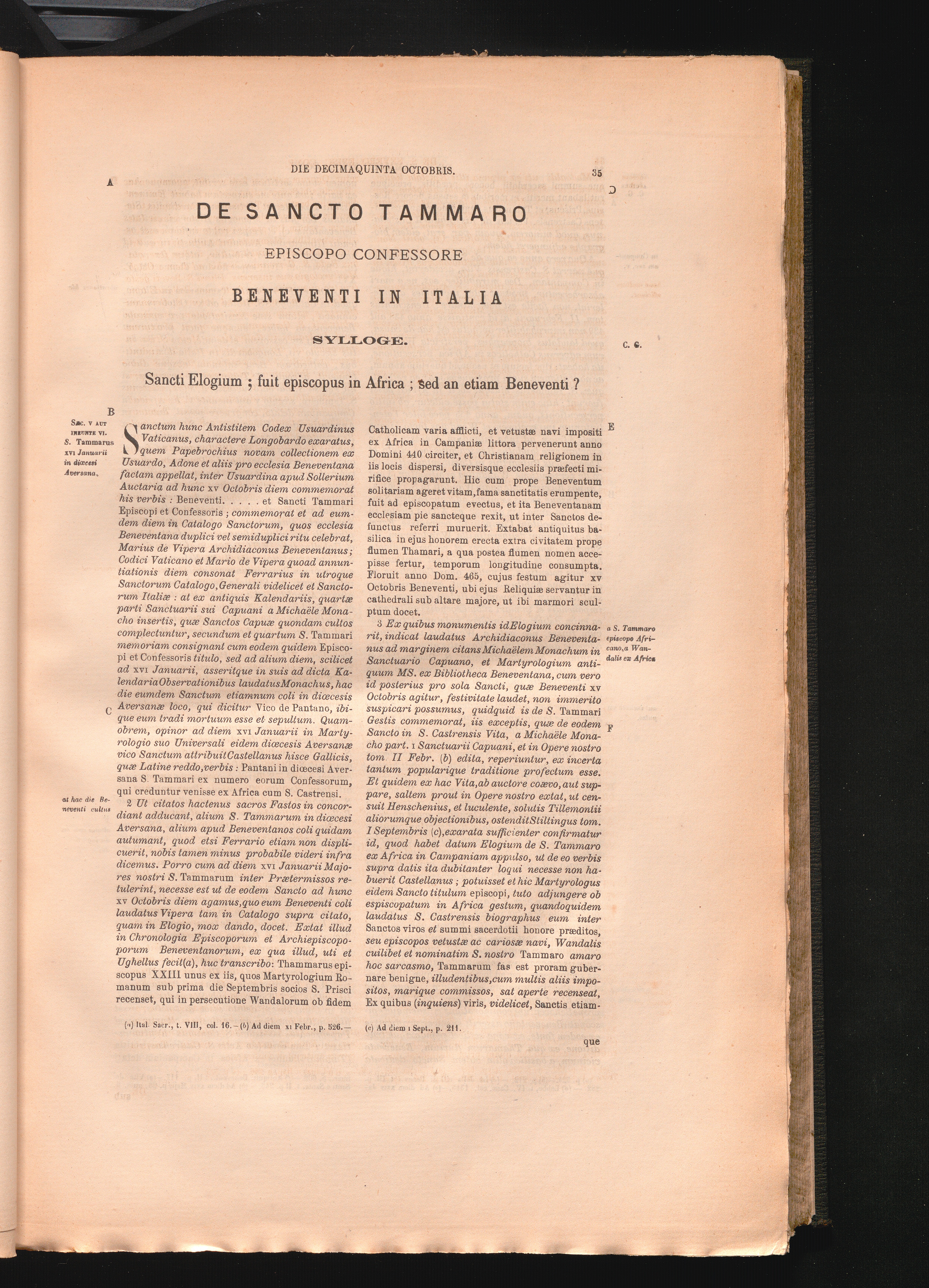 De Sancto Tammaro Episcopo Confessore Beneventi In Italia Sylloge.