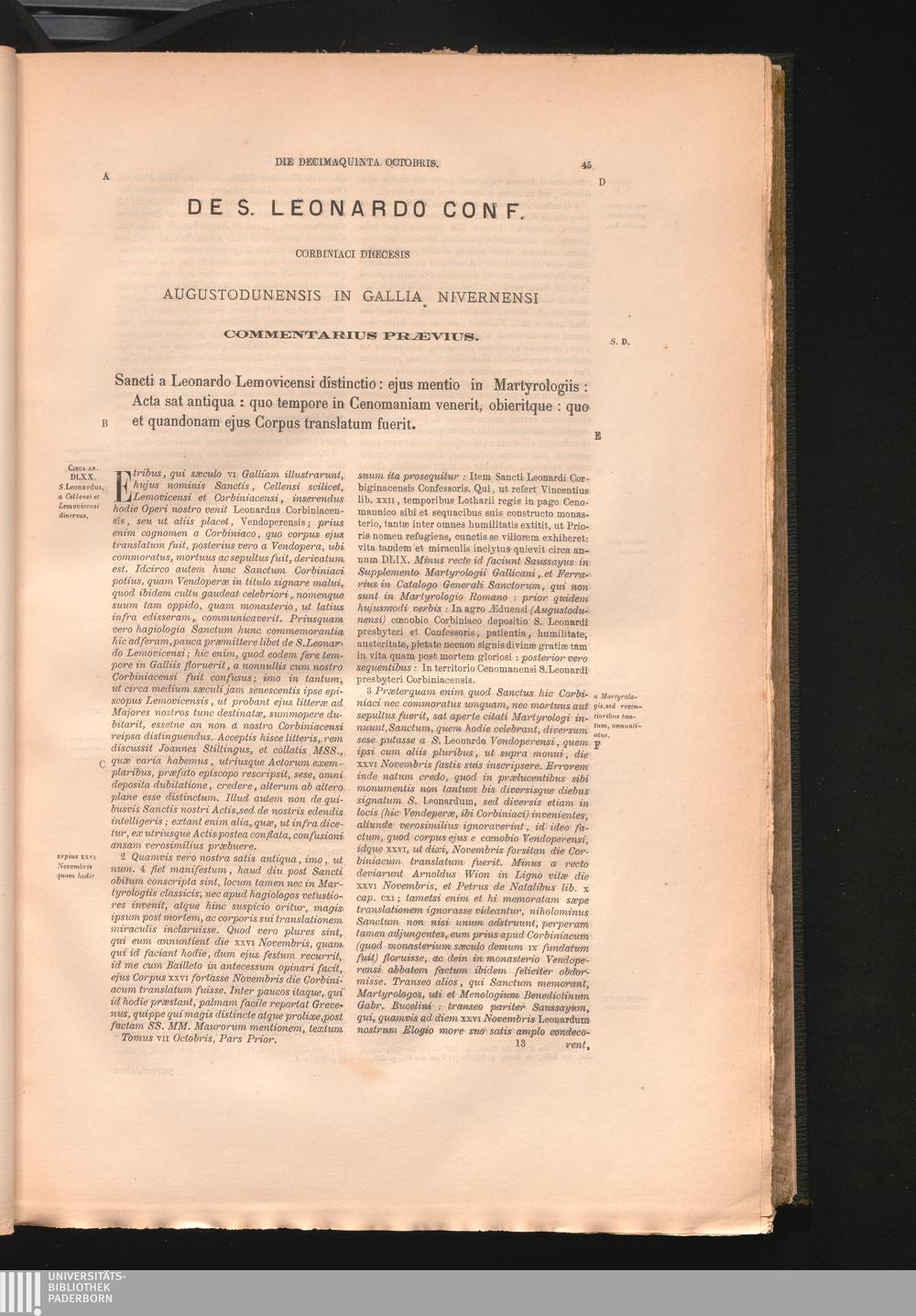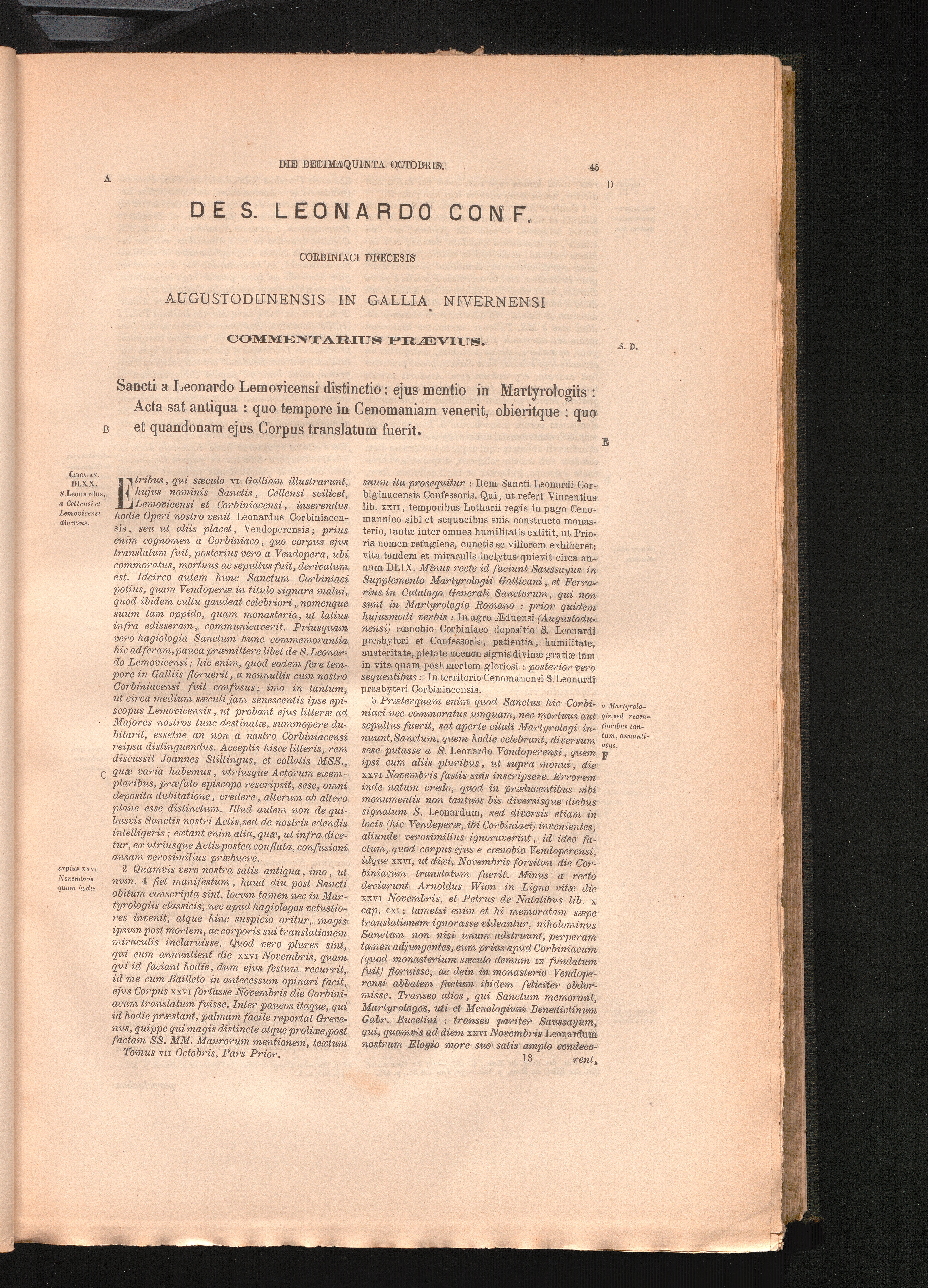 De S. Leonardo Conf. Corbiniaci Dicecesis Augustodunensis In Gallia Nivernensi. Commentarius[...]