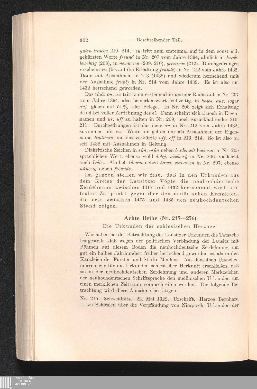Achte Reihe (Nr. 215-256) Die Urkunden der schlesischen Herzöge