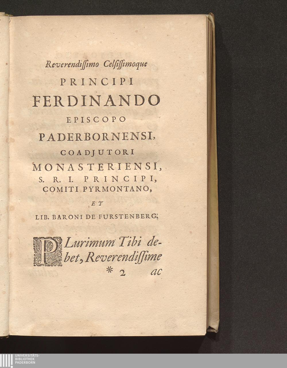 Reverendissimo Calsissimoque Principi Ferdinando Episcopo Paderbornensi, Coadjutori[...]