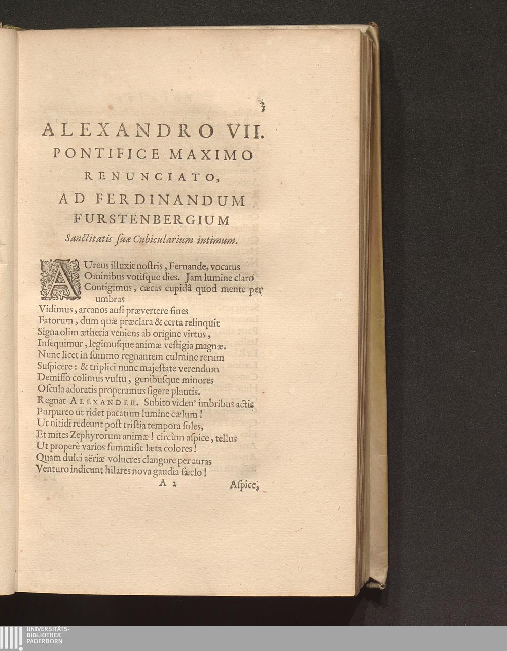 Alexandro VII. Pontifice Maximo Renunciato, Ad Ferdinandum Furstenbergium Sanctitatis[...]