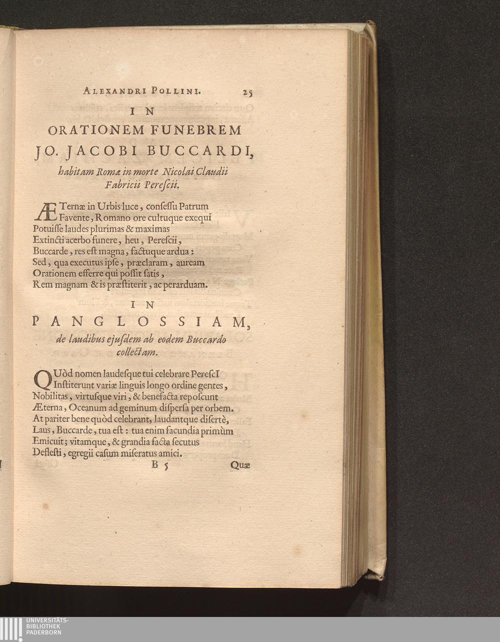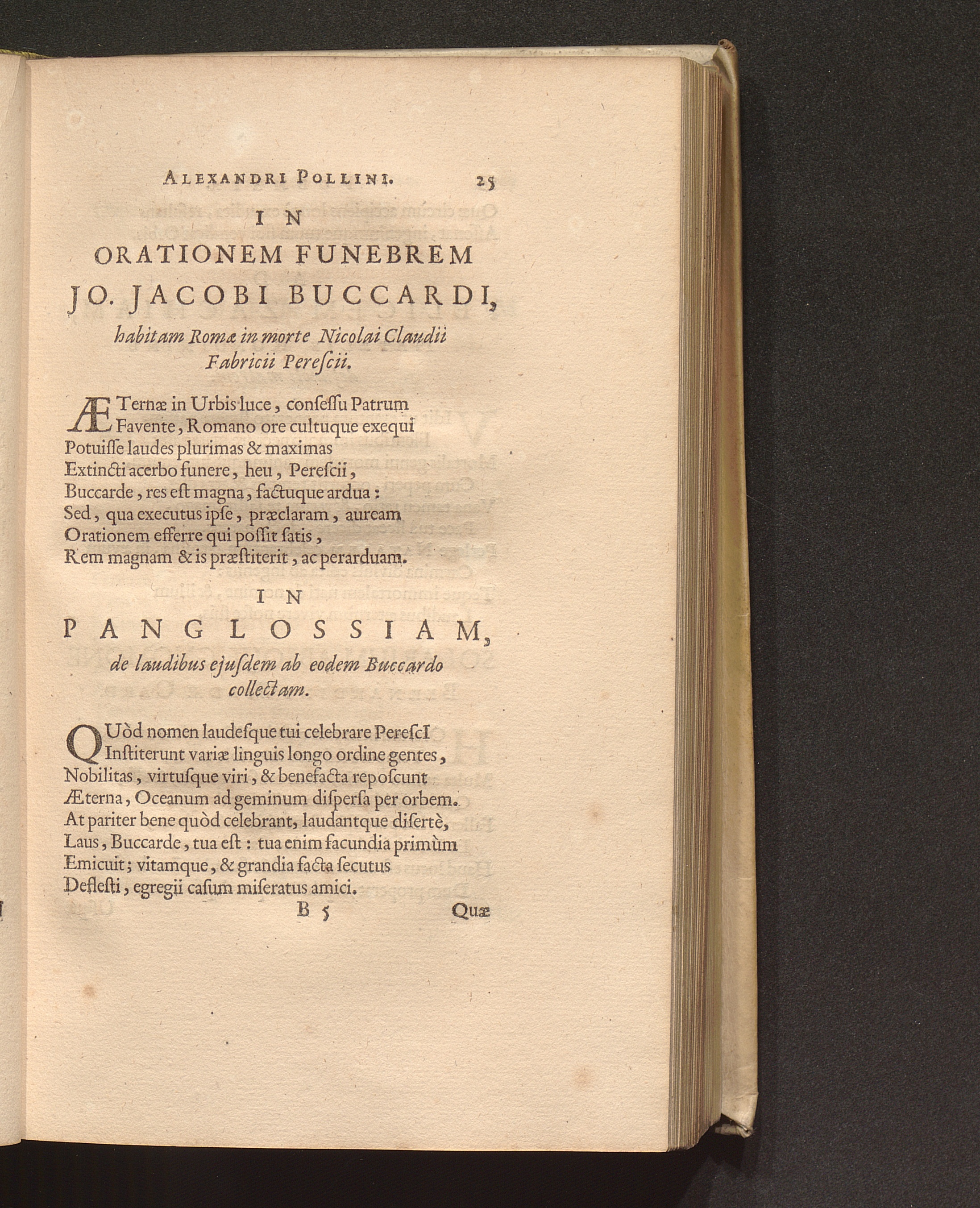 In Panglossiam, de laudibus ejusdem ab eodem Buccardo collectam.