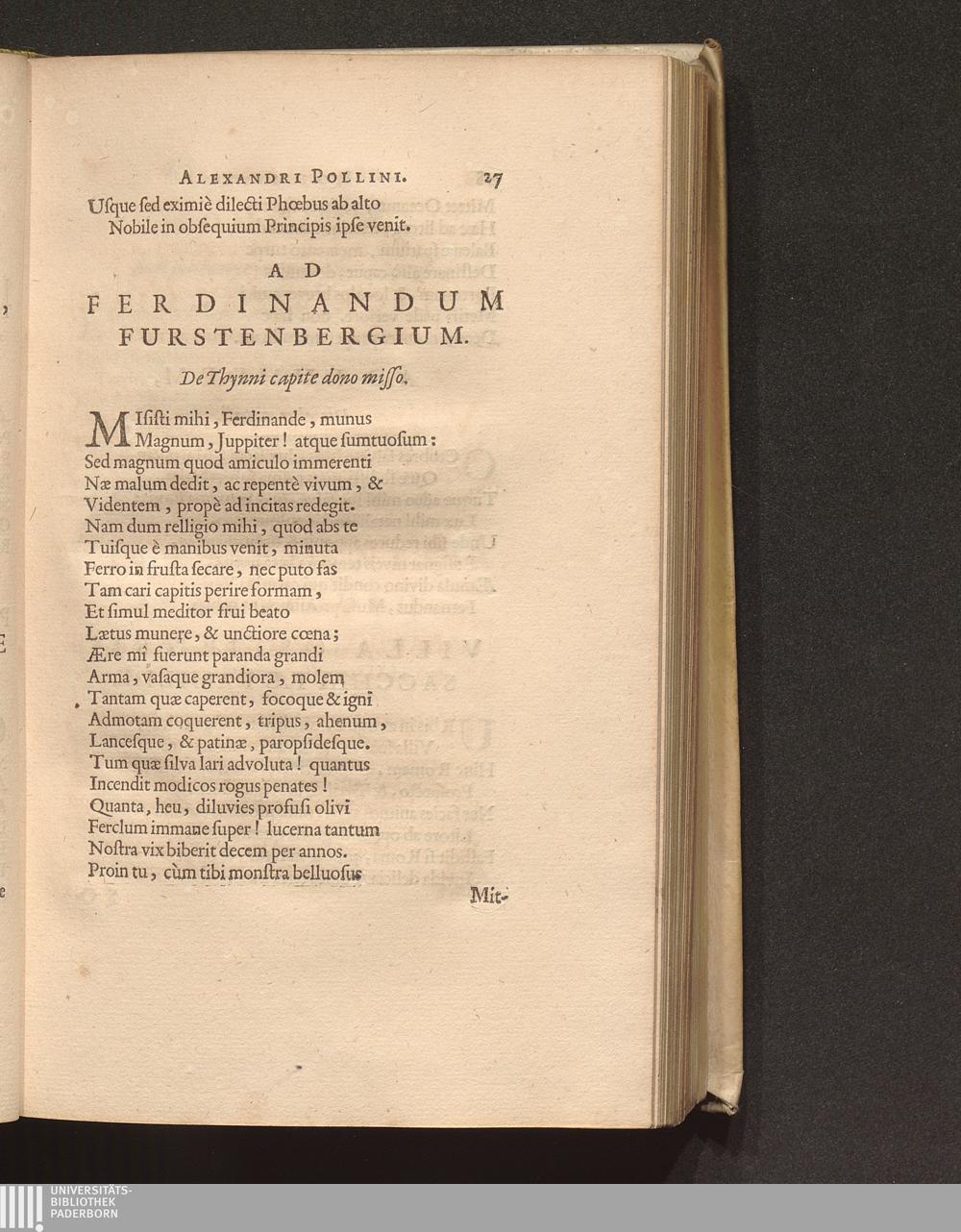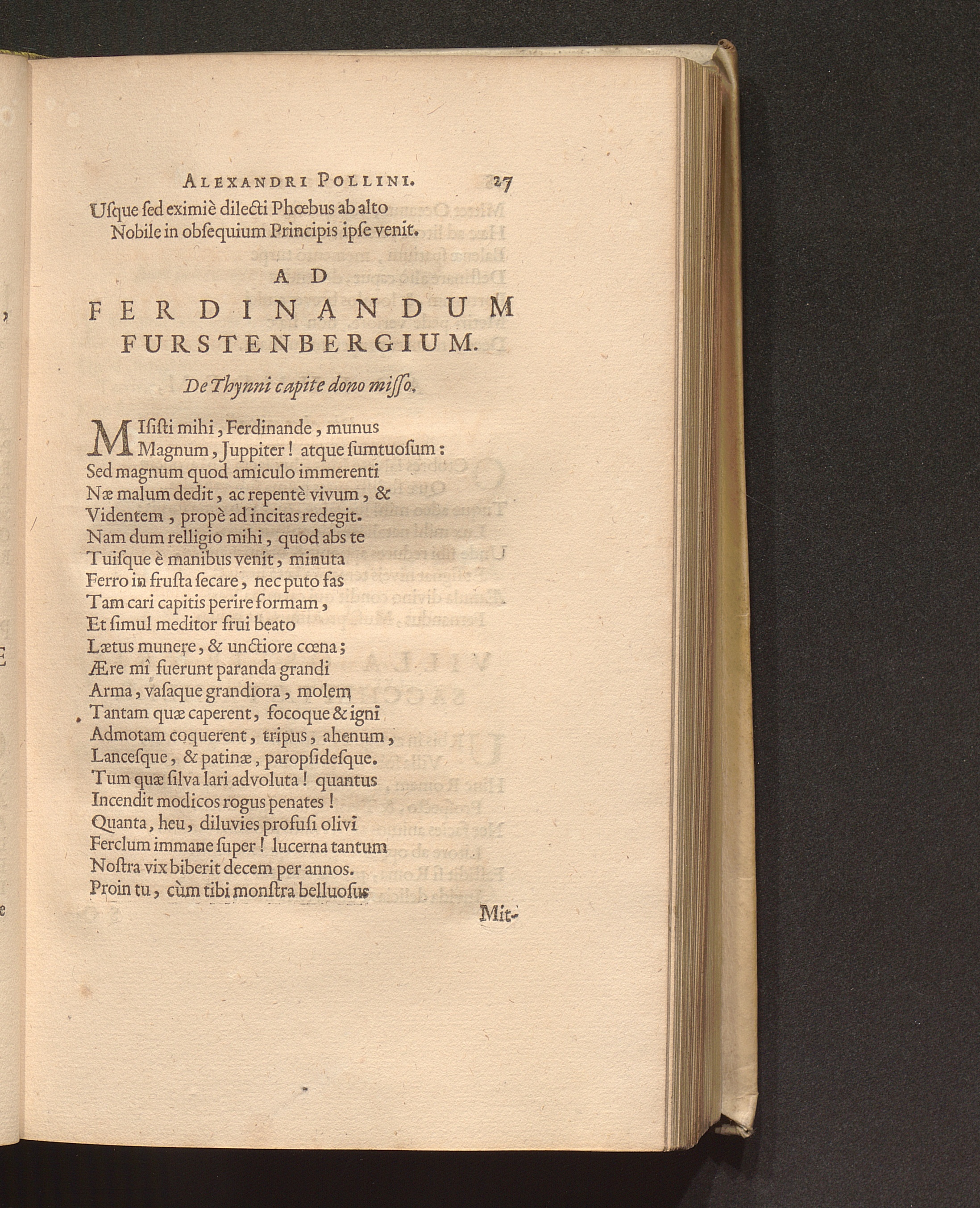 Ad Ferdinandum Furstenbergium. De Thynni capite dono misso.