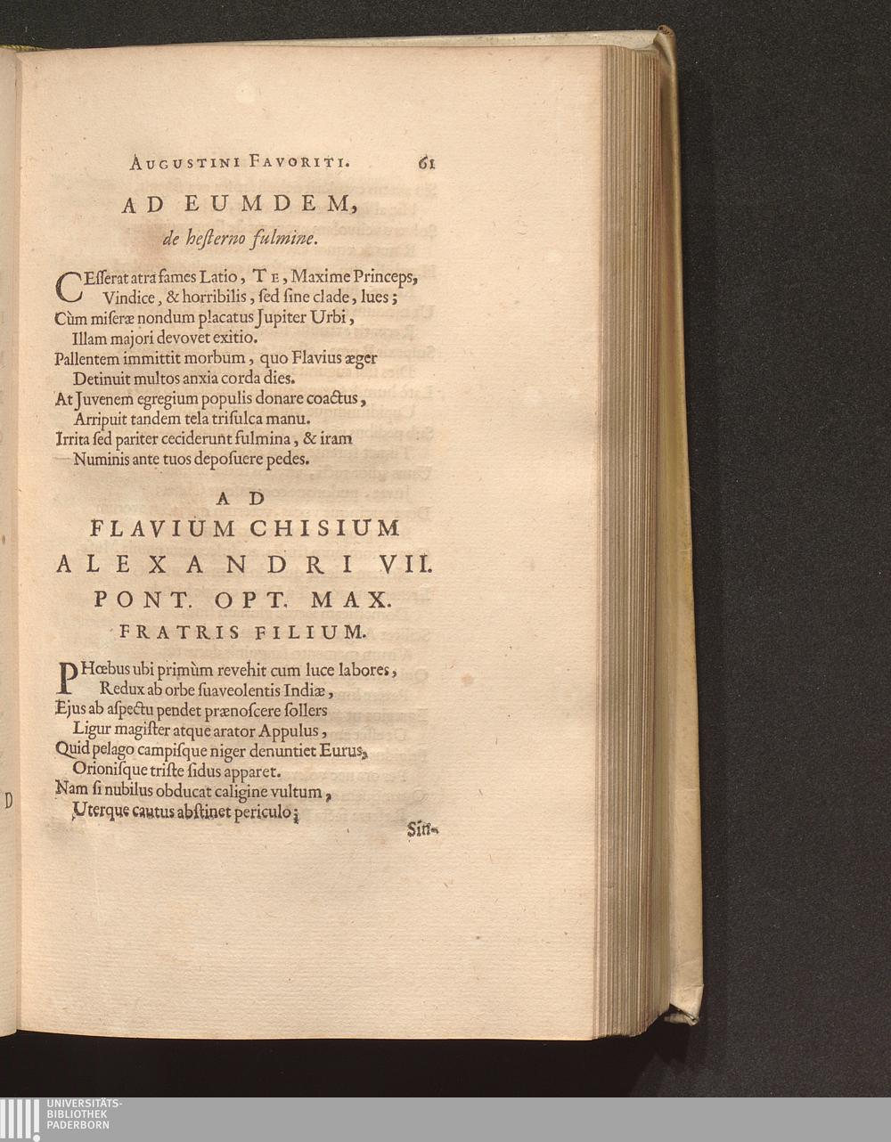 Ad Flavium Chisium Alexandri VII. Pont. Opt. Max. Fratris Filium.
