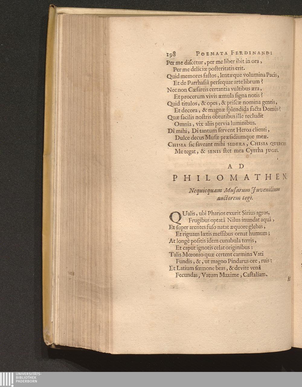 Ad Philomathen. Nequicquam Musarum Juvenilium auctorem tegi.