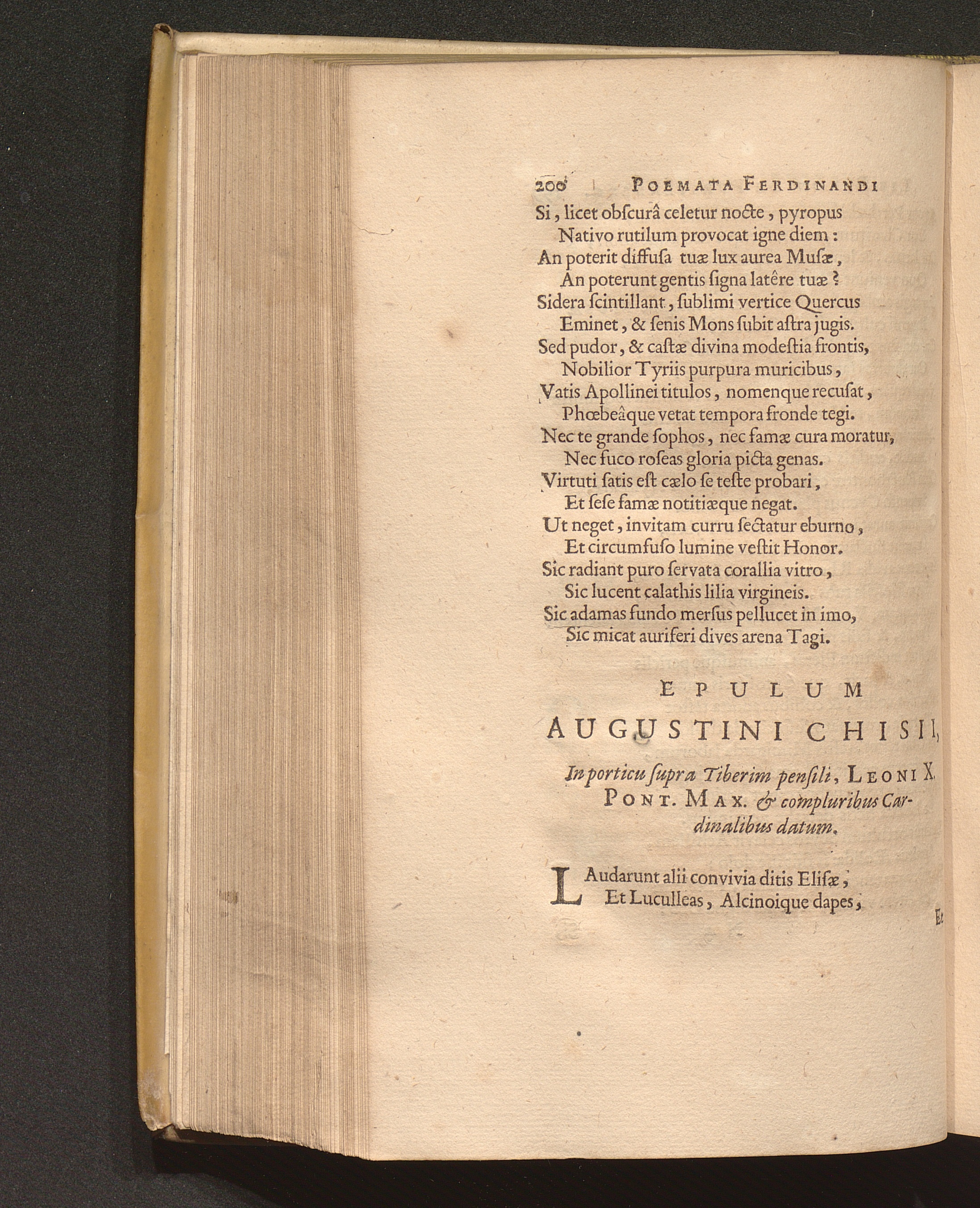 Epulum Augustini Chisii, In porticu supra Tiberim pensili, Leoni X. Pont. Max. &[...]